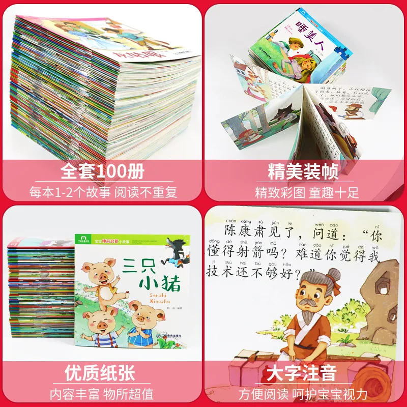 100 книг, Классическая сказочная история для родителей и детей, для малышей, для сна, английский, китайский, пиньинь, мандарин, для детей 0-6 лет