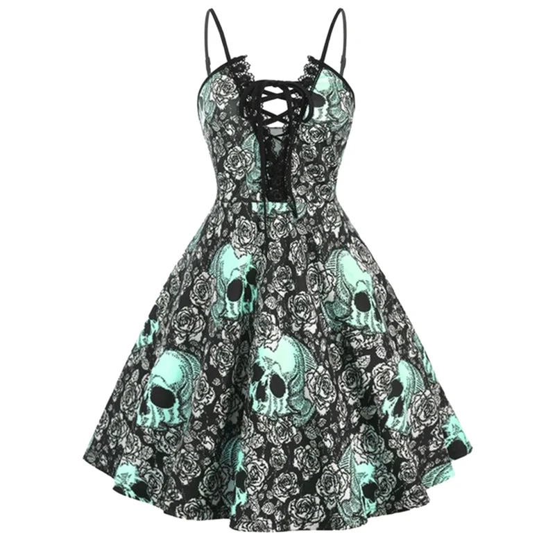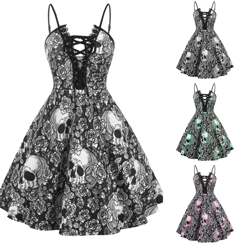 ПНазвание продукта:Женское платье на бретельках, ретро-платье с принтом черепа на Хэллоуин, Повседневное платье без рукавов на осень и зиму