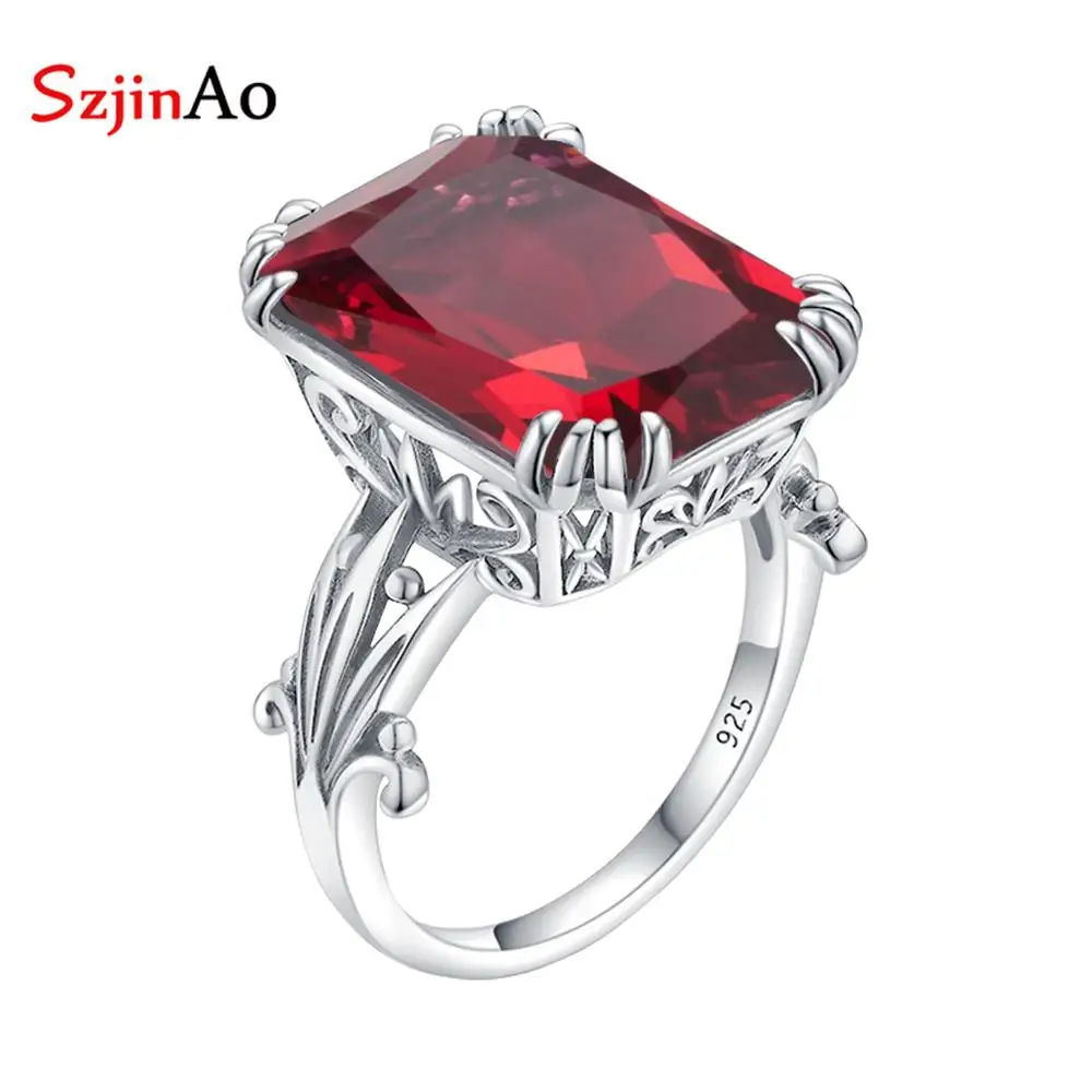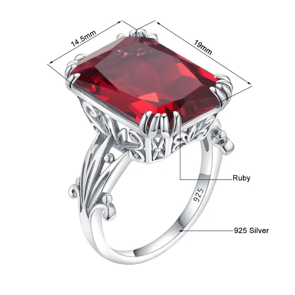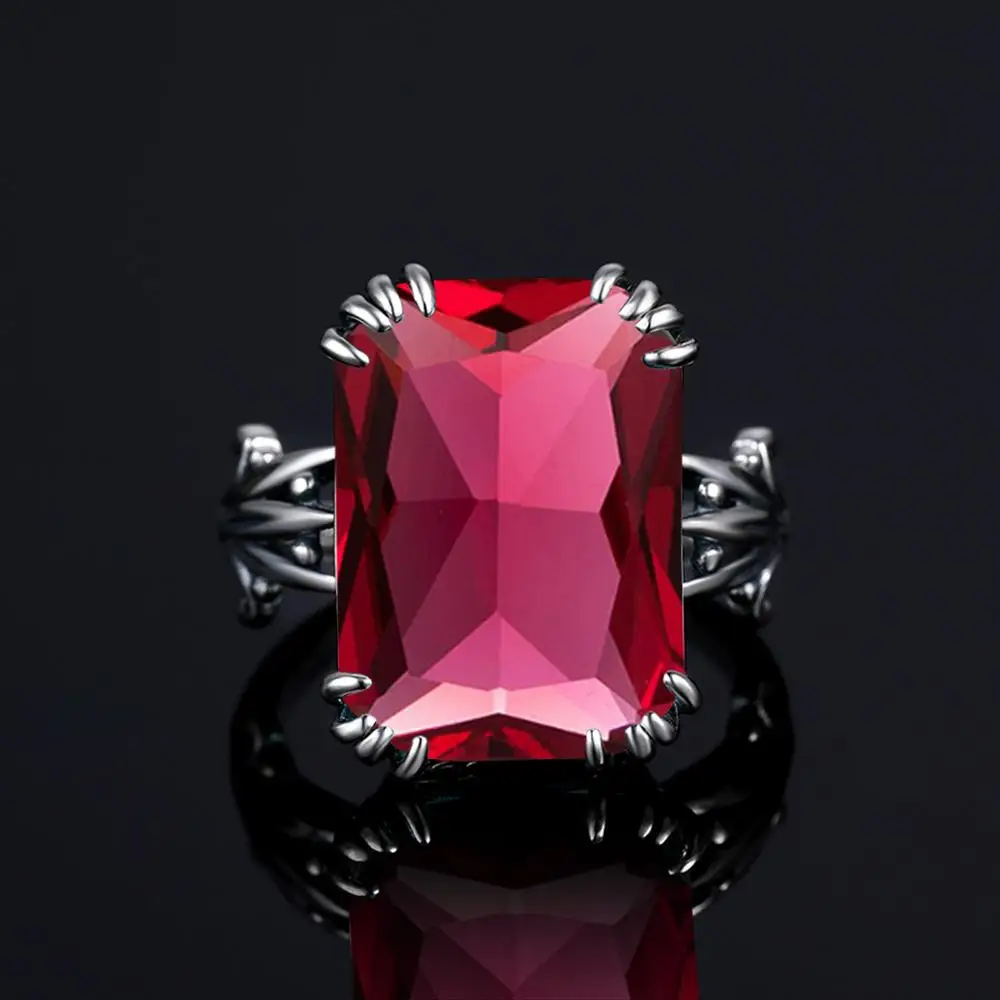 Настоящее 925 пробы, серебряные кольца для женщин, красный рубин, ручная работа, хорошее ювелирное изделие, Retangle Neo-Gothic, серебро 925 пробы, кольцо с ювелирной коробкой