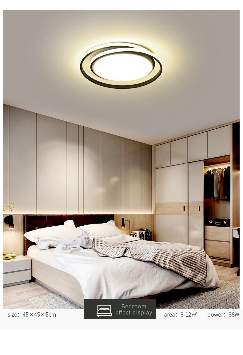 Светодиодный потолочный светильник, лампа для спальни, столовой, кабинета, круглсветильник лампы для освещения дома, 110 В, 220 В переменного тока