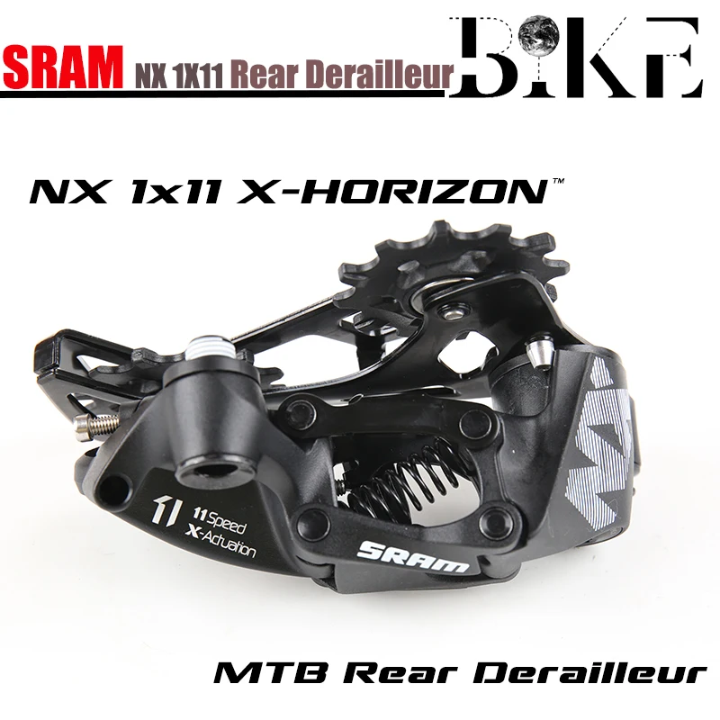 SRAM NX X-HORIZON™Задний переключатель обеспечивает один и тот же гладкое, надежный перевод действий XX1-from больший верхний шкив офсетная печать на 12-зуб X-SYNC™Шкив колеса. Устраняя нежелательные цепные движения, X-HORIZON™Двигается быстрее, приводит конец к смещению Призрака и уменьшает силу сдвига и цепную пощечину. И замок-клетка™Технологии, удаление и установка колес проще, чем когда-либо.