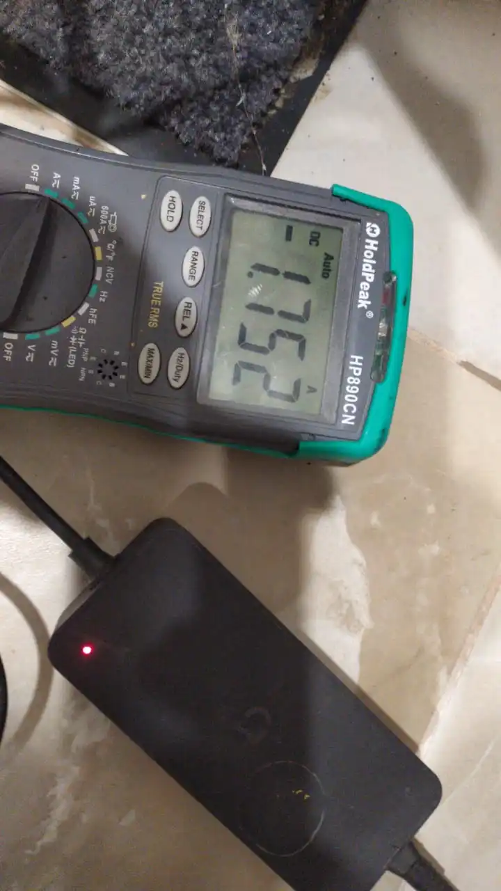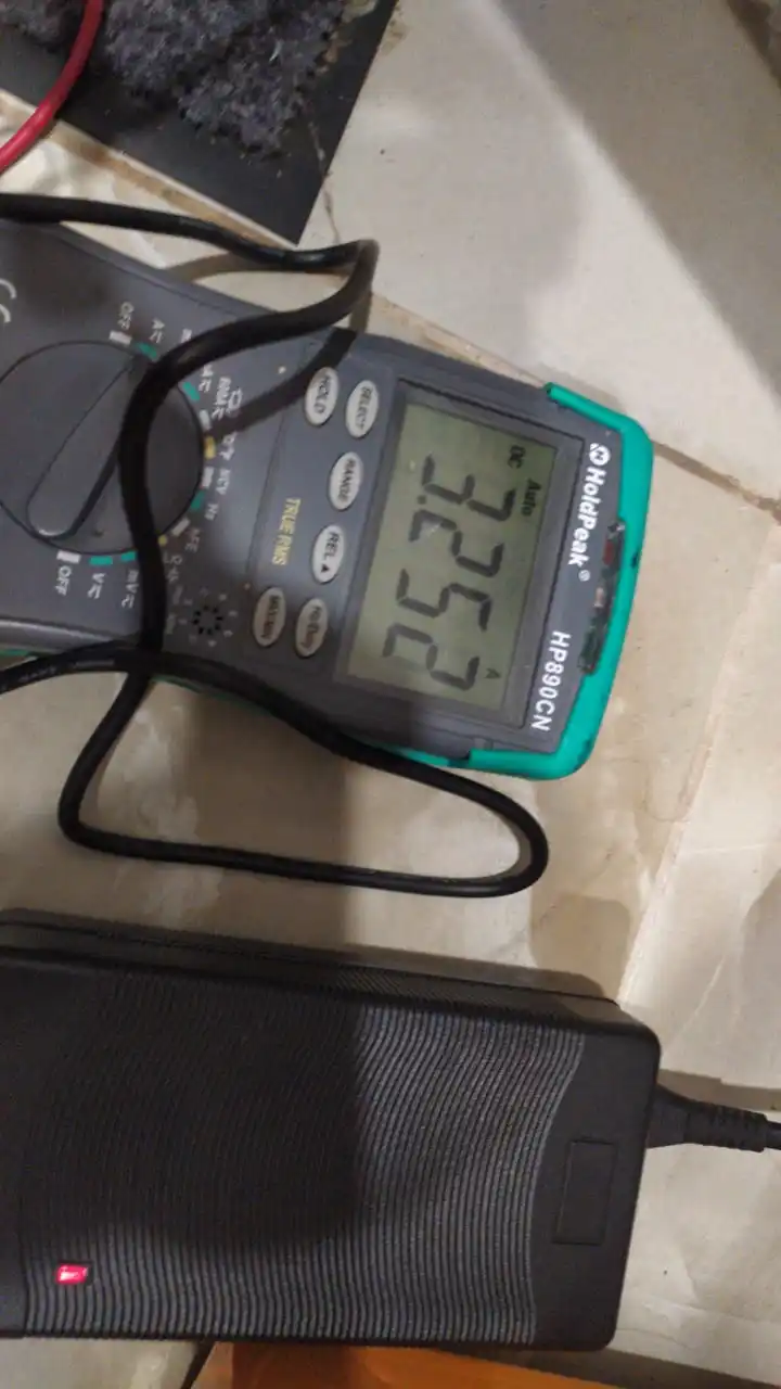 Его около 3,2 А. Заряжайте мой 36В 7.8An аккумулятор в течение 3 наших.
