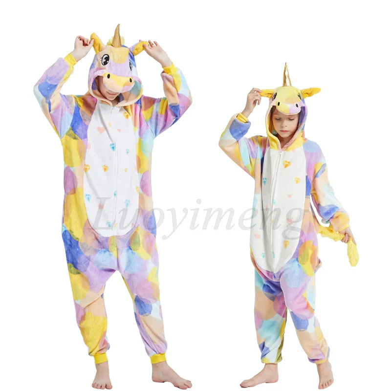 Зимняя Пижама-комбинезон в стиле аниме, женская одежда для сна, кигуруми, пижамы для взрослых, Стич, панда, единорог, Лев, косплей, Детская Пижама для мальчиков и девочек