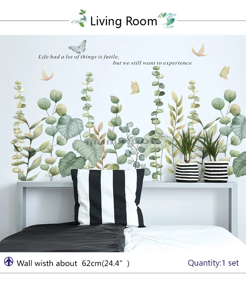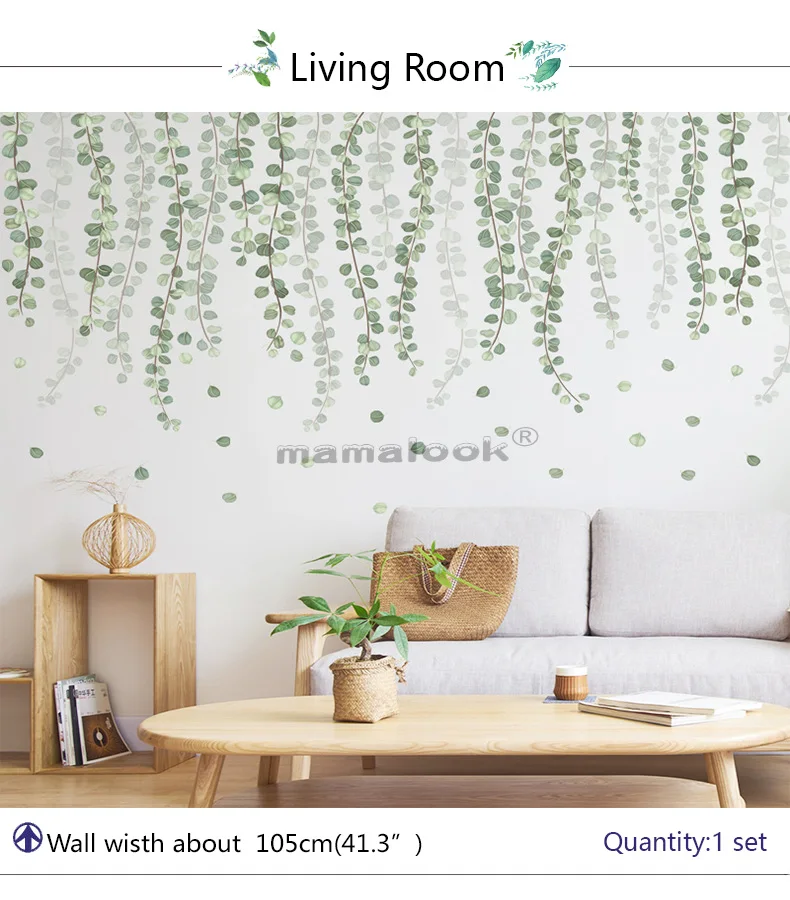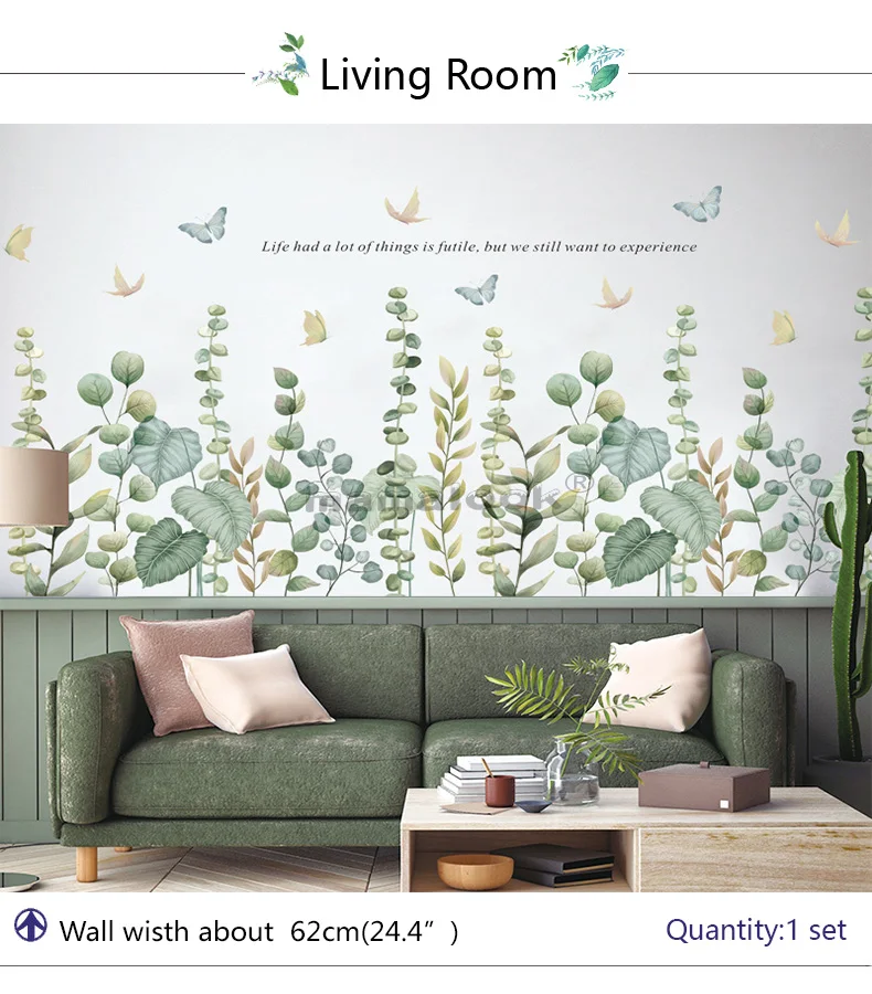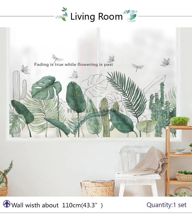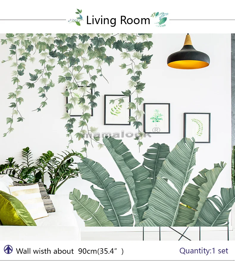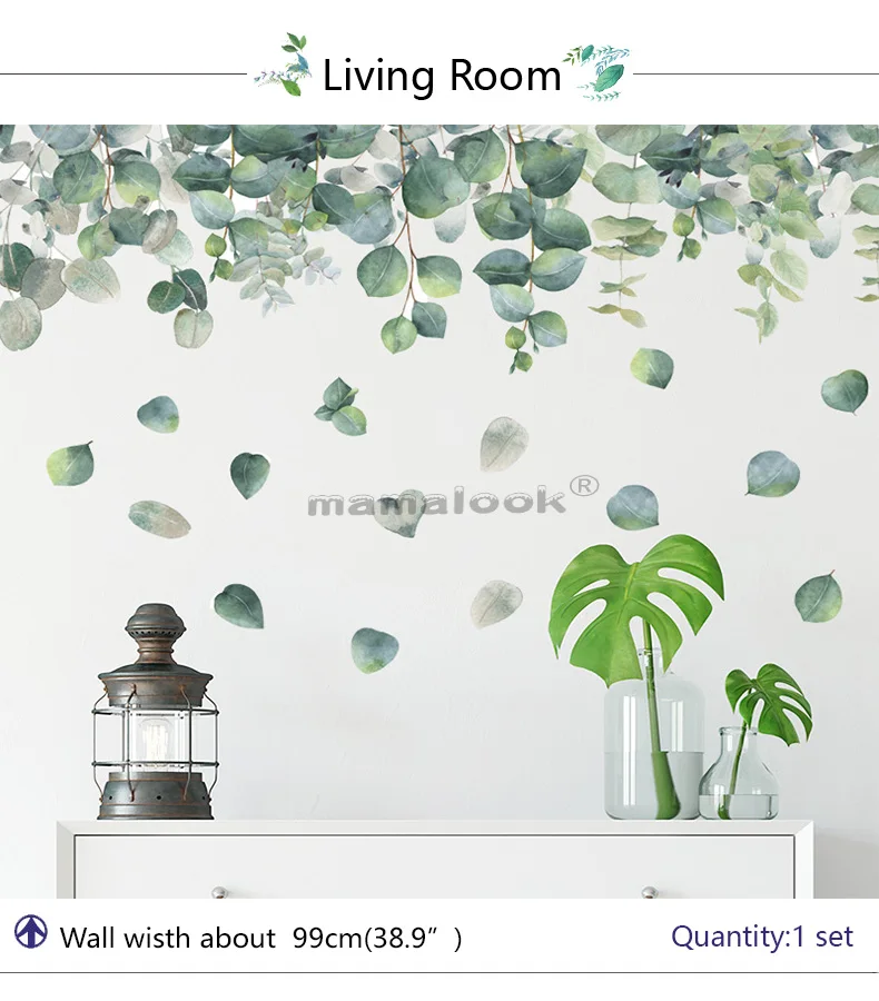 17 стилей зеленые листья настенные наклейки для спальни, гостиной, столовой, кухни, детской комнаты DIY виниловые наклейки на стены Дверные фрески