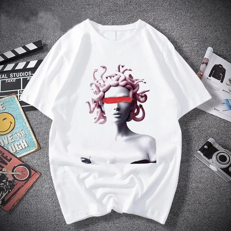 Футболка женская оверсайз с коротким рукавом и принтом Микеланджело