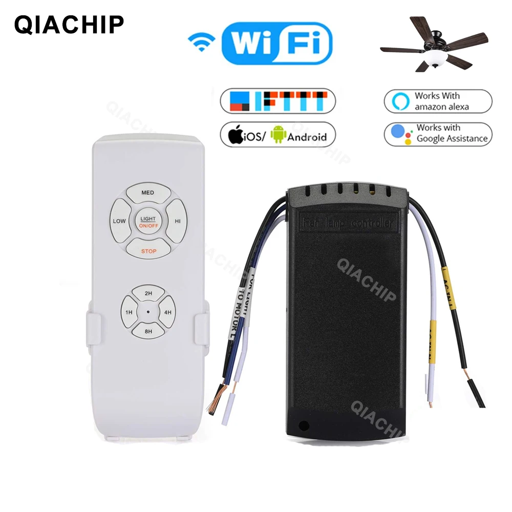 Умный потолочный вентилятор QIACHIP, Wi-Fi, переключатель дистанционного управления, работает с приложением Alexa и Google Home, 220 В переменного тока