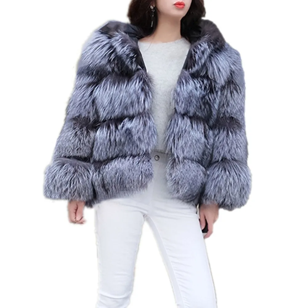 Женское зимнее толстое теплое пальто с длинным рукавом из искусственного меха, куртка с капюшоном, роскошные меховые пальто, шуба из искусственного лисьего меха, пальто