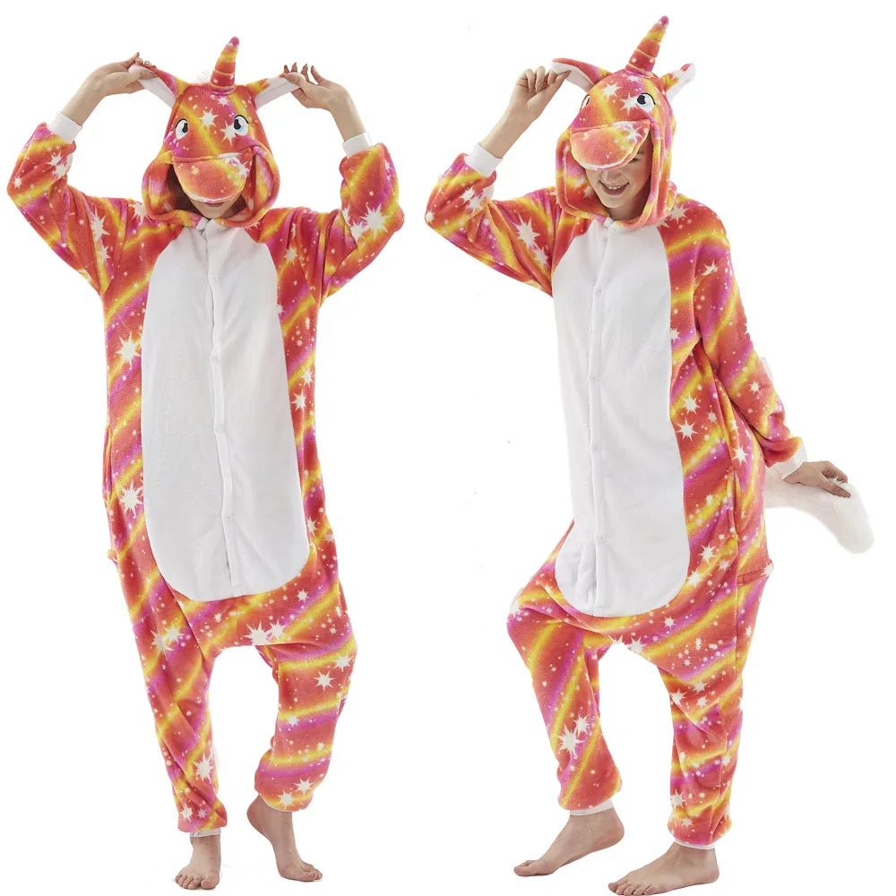Зимняя Фланелевая пижама в виде радужного единорога, пижама в виде ...