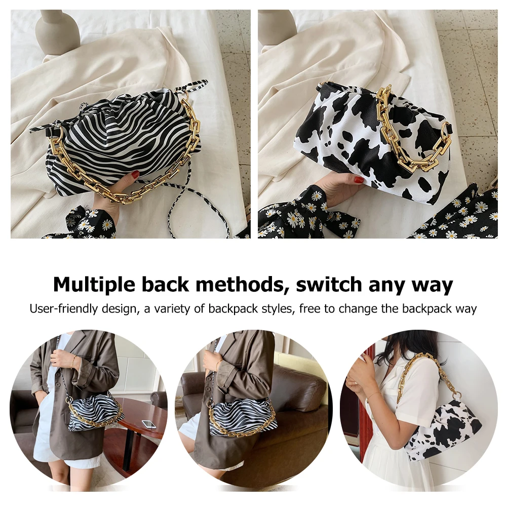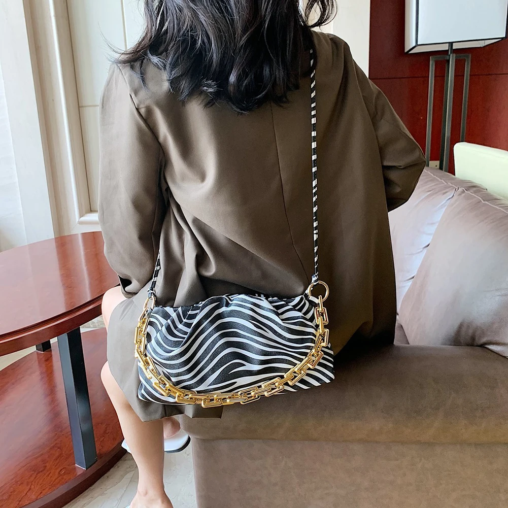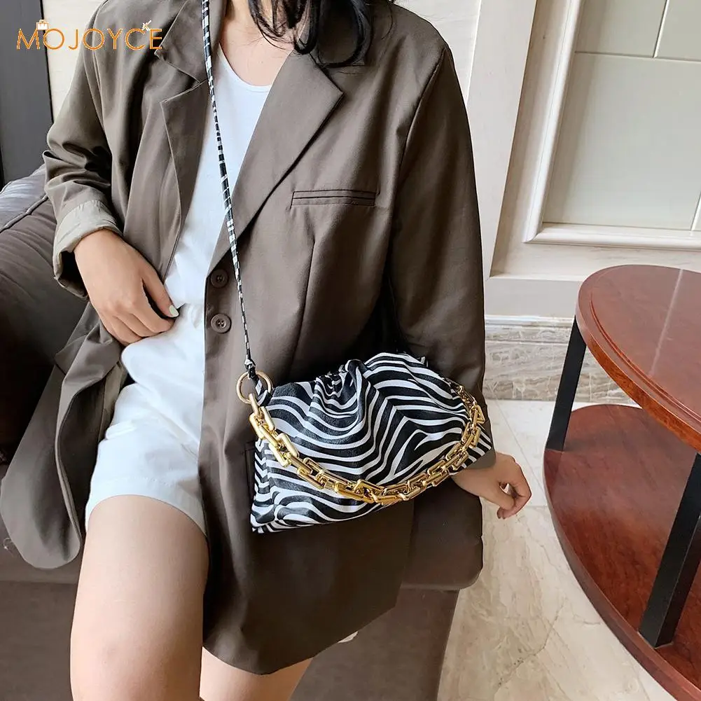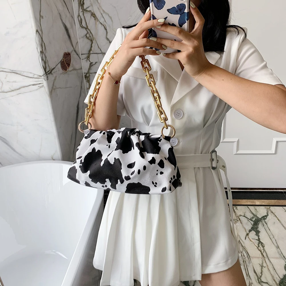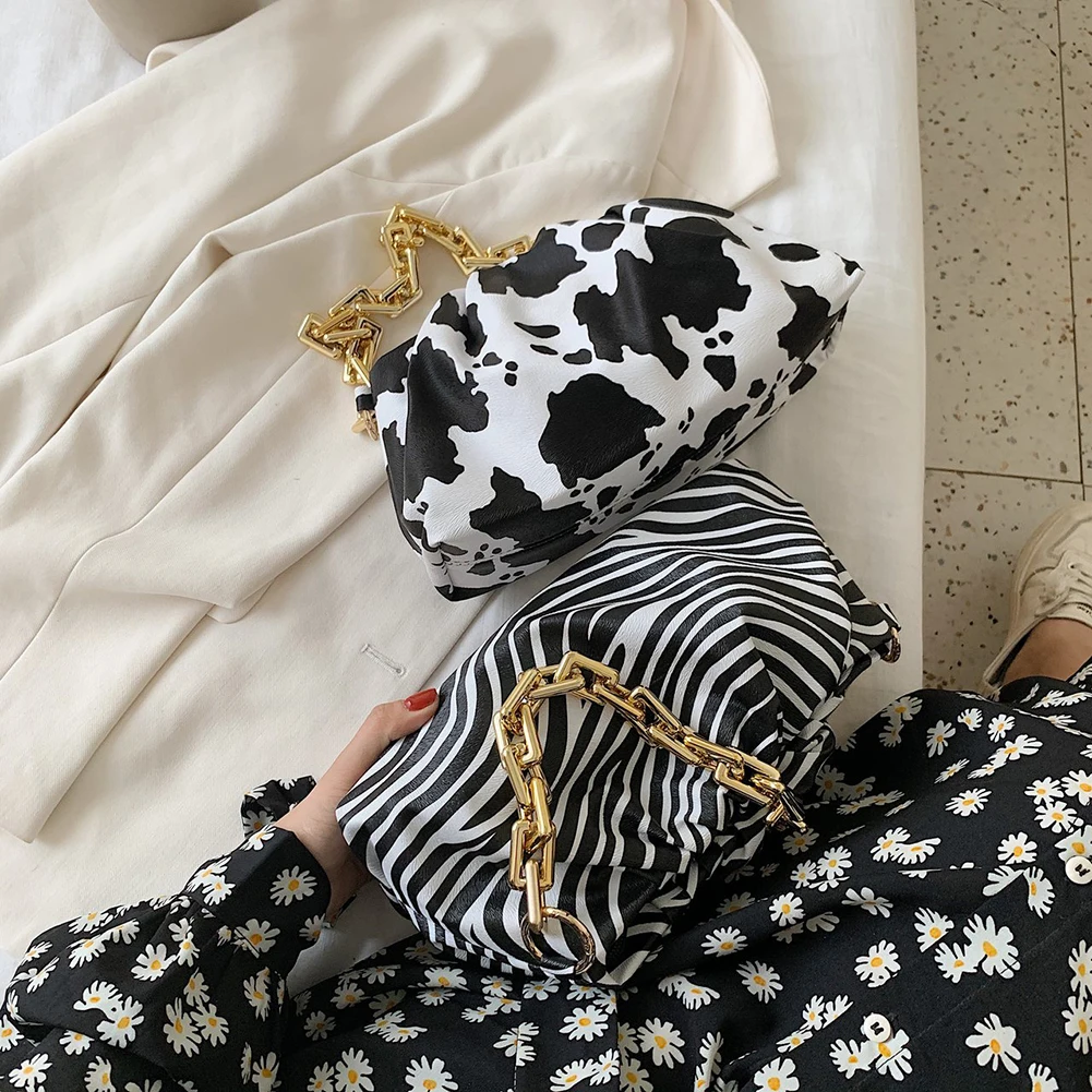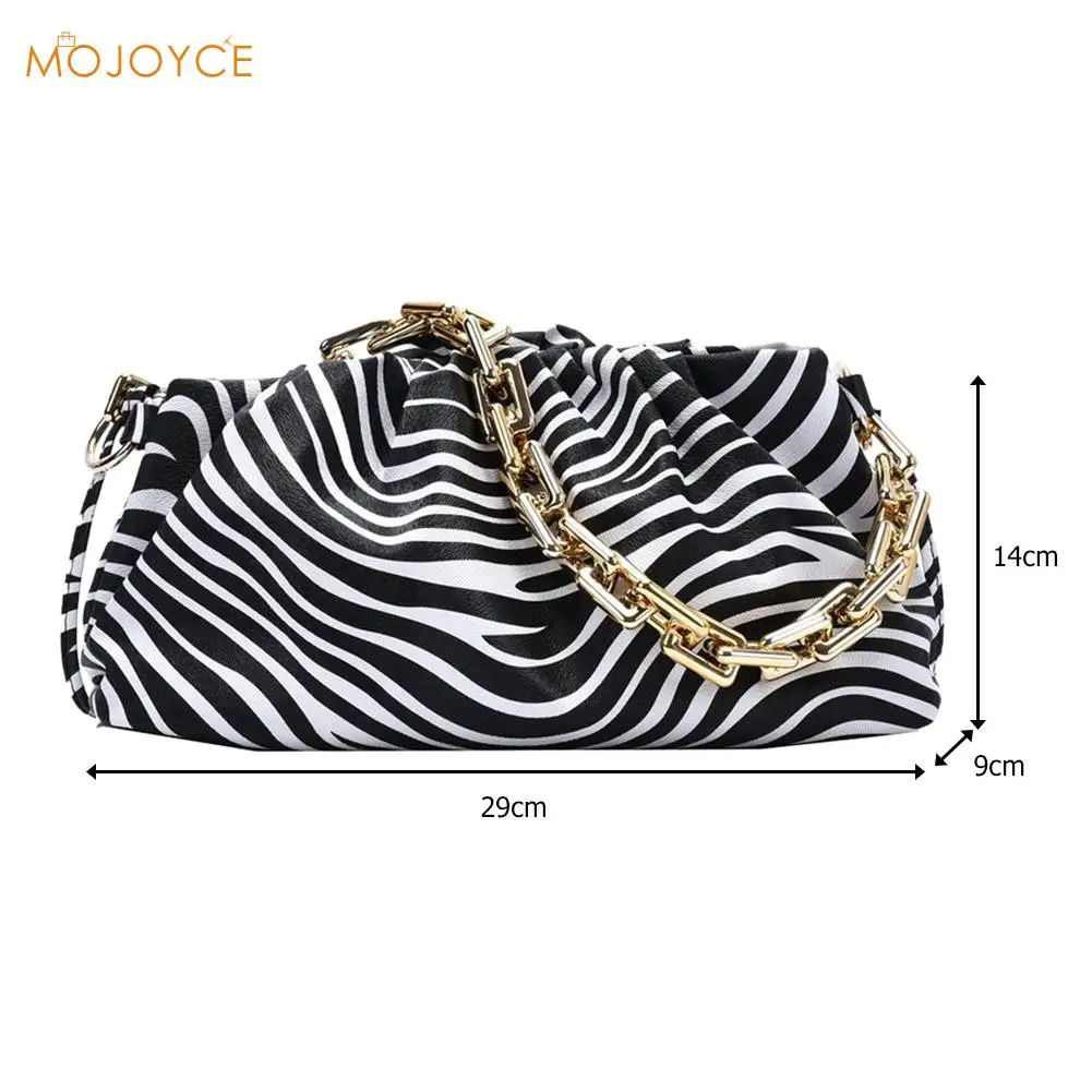 Сумочка из искусственной кожи для женщин, вечерний клатч на плечо с облачной цепочкой, с принтом зебры, коровы, животного, для вечеривечерние