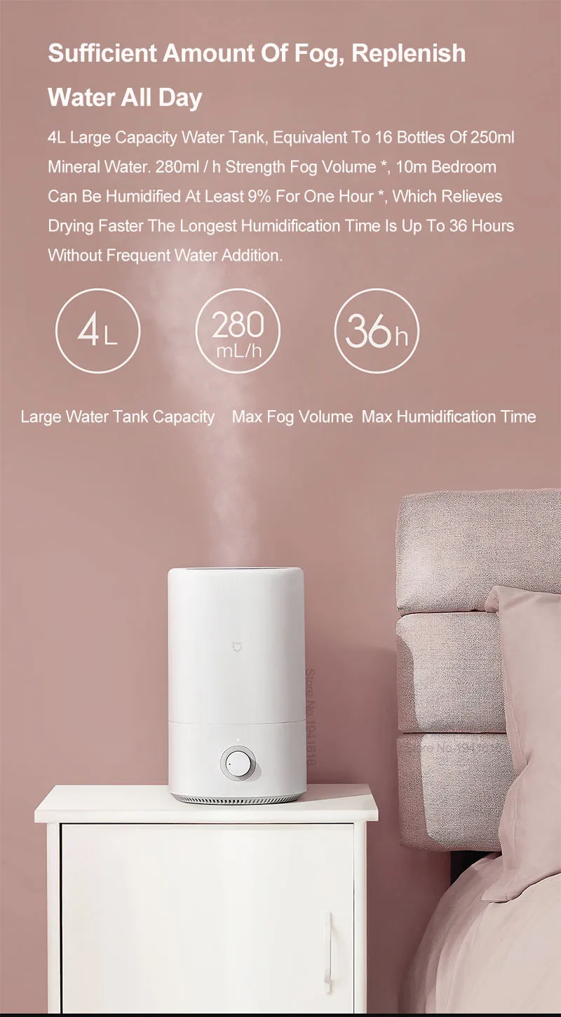 Увлажнитель воздуха Xiaomi MIJIA для дома, ультразвуковой очиститель воздуха 4 л, управление через приложение, для комнат с кондиционером и офисом