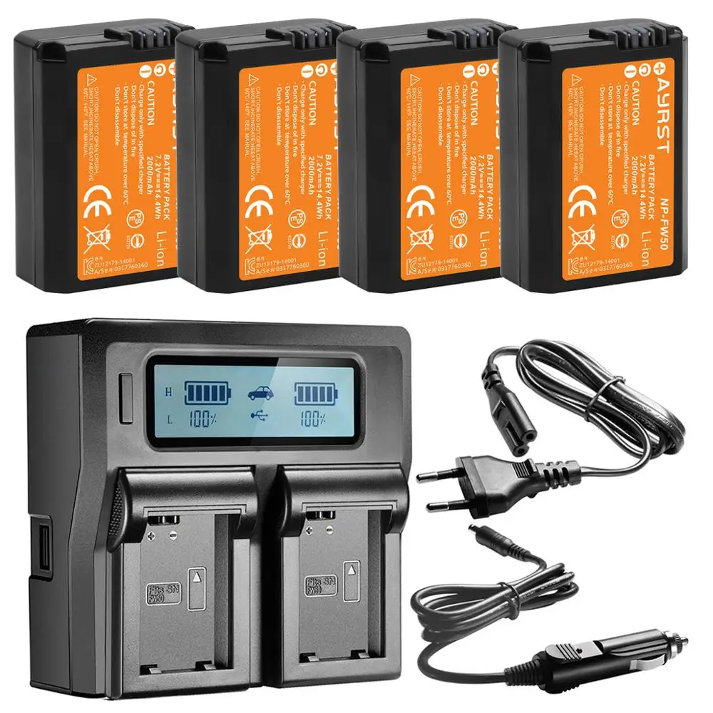 4 шт. 2000 мАч, NP-FW50 NPFW50 Батарея + Быстрая Двойная Зарядное устройство для Sony Alpha a6500 a6300 a7 a7R a7R II a7II NEX-3 NEX-3N NEX-5 NEX-7