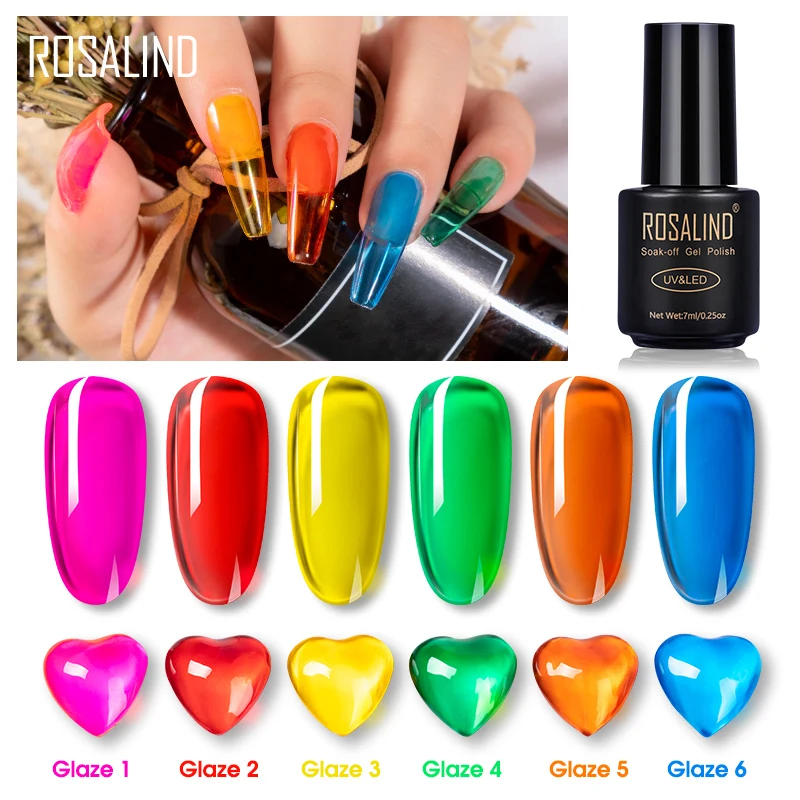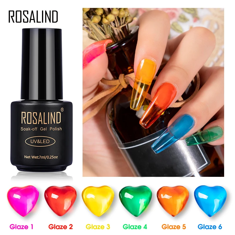 ROSALIND 7 мл отмачиваемый глазурь стеклянный опал Желейный гель Радужный Янтарный глазурь желе для ногтей стеклянные конфеты полупрозрачный гель лак для дизайна ногтей