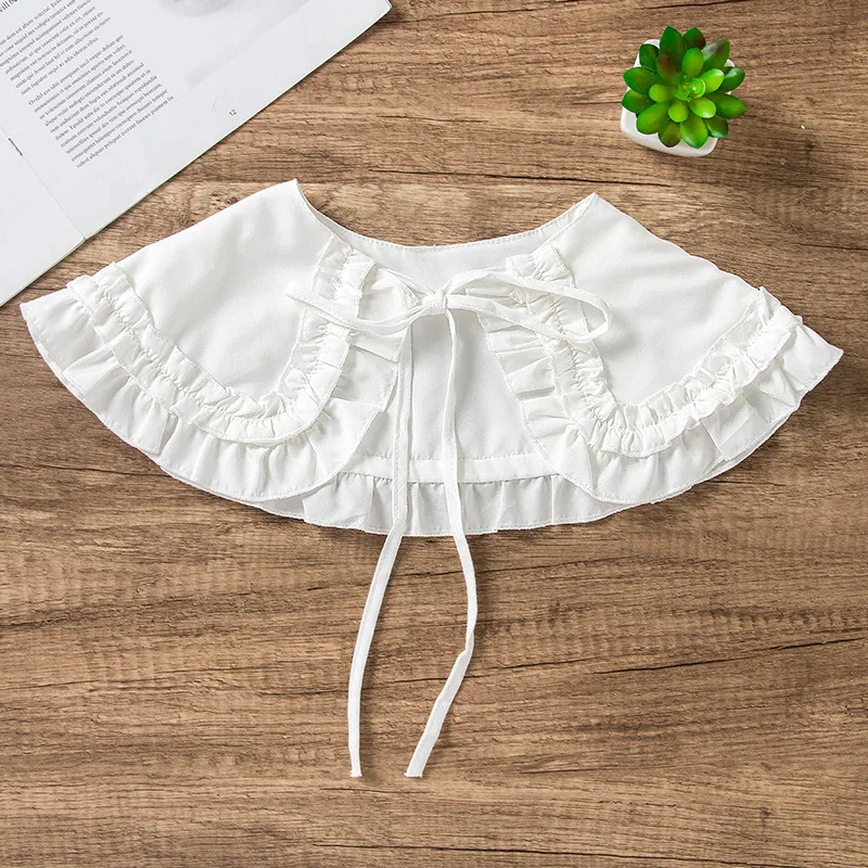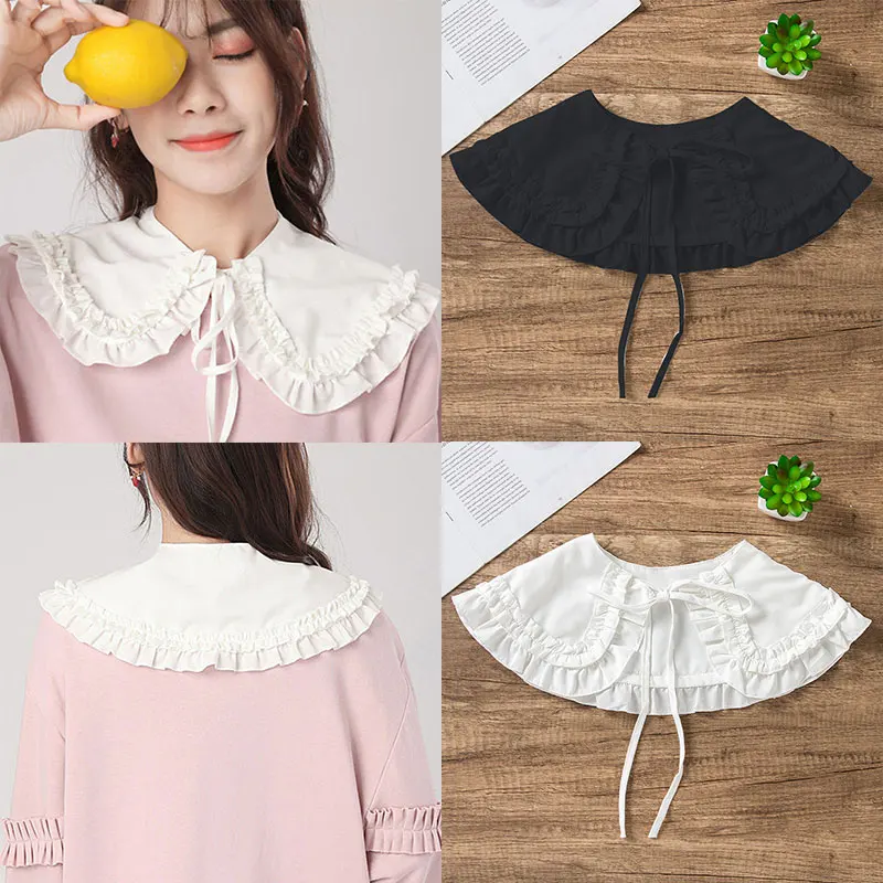 Элегантные воротники, японская кукла Лолита для женщин и девочек, двойной слой, оборки, ложный воротник, наплечная накидка, черный, белый, съемный воротник