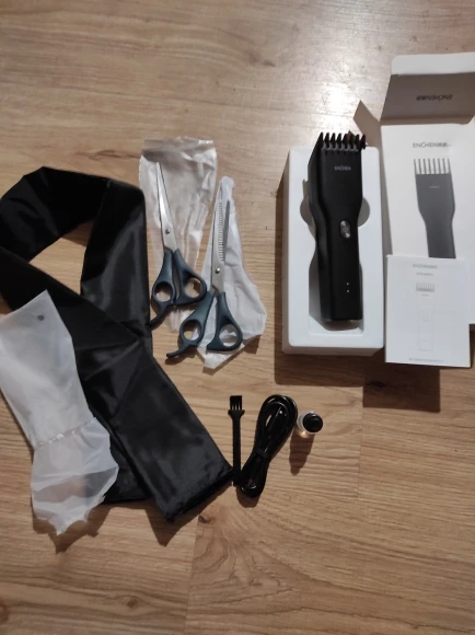 Машинка стрижет нормально. Как надолго хватит ножей покажет время. Накидка не практичная, спину не прикрывает. Ножницы острые, но отверстия под пальцы уж очень маленькие. такое ощущение что они для детей. Машинка для домашних нужд вполне сойдёт.