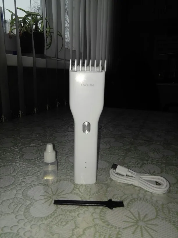 Добрый день. Кратко о товаре: 1. Цена со скидкой 855 руб. 2. Доставка 14 дней 3. Упакован хорошо, все пришло целое. 4. Комплектация: машинка для стрижки, щёточка, флакончик с маслом, кабель для зарядки ( без зарядного устройства). 5. Работает тихо, в руке лежит удобно, насадка одна регулируется от 3 до 21 мм ( шаг 3 мм), насадку можно снять. 6. Стрижет хорошо. 7. Рекомендую !!!