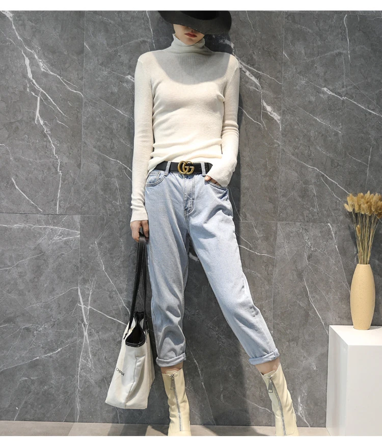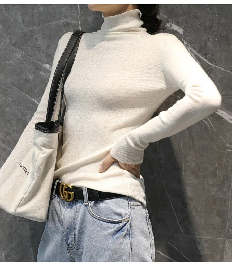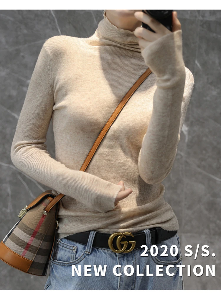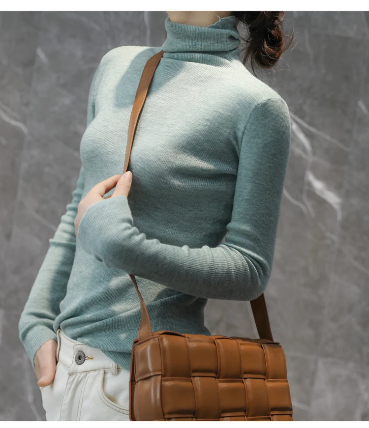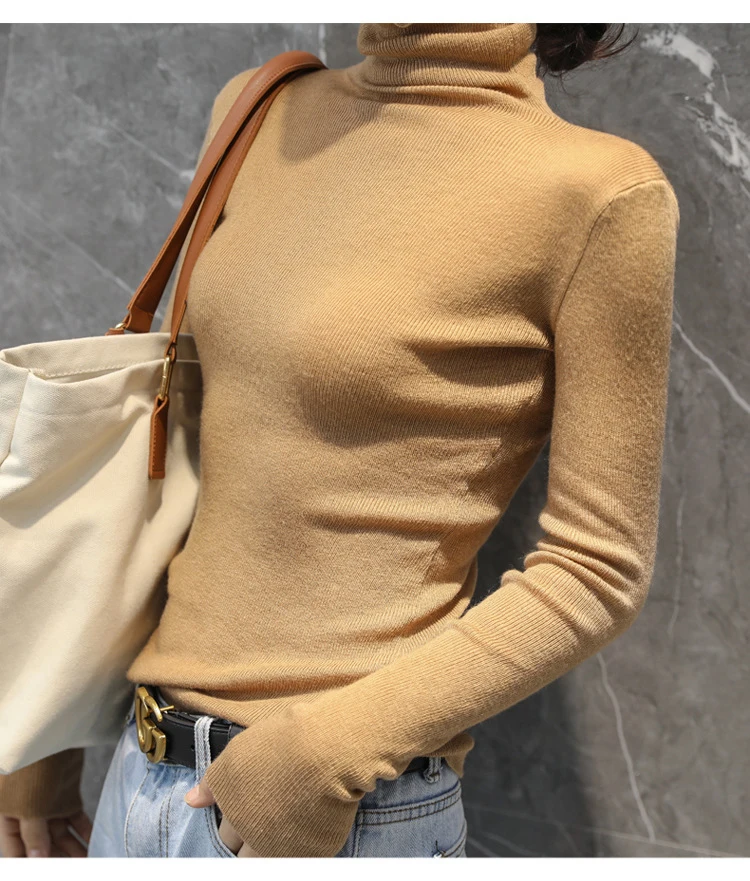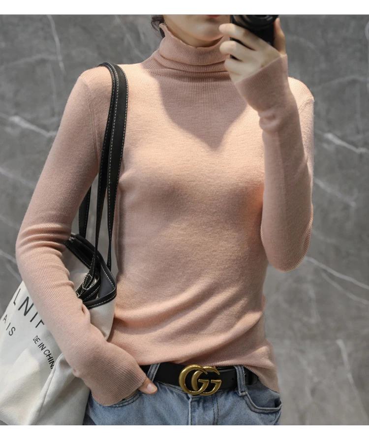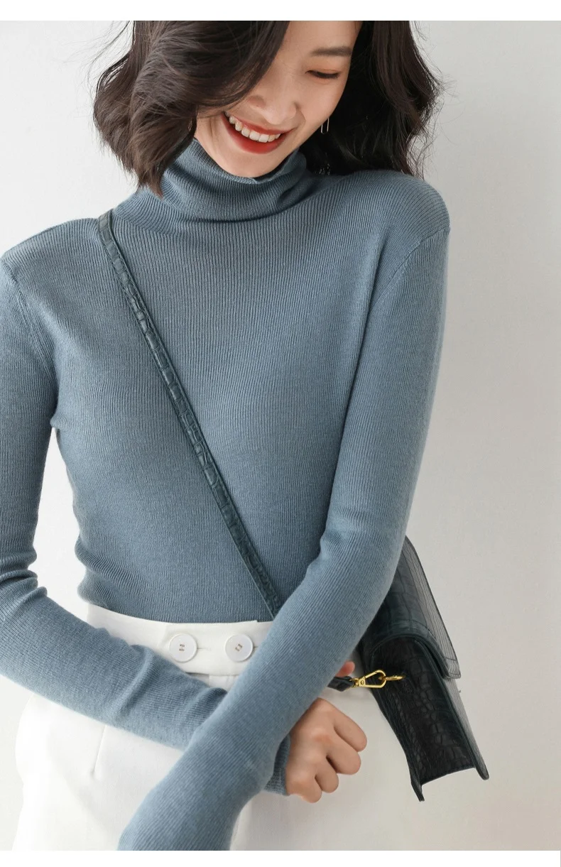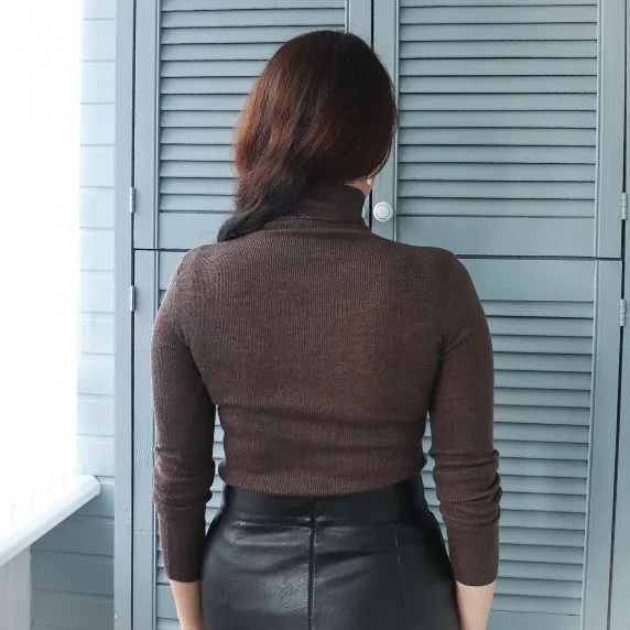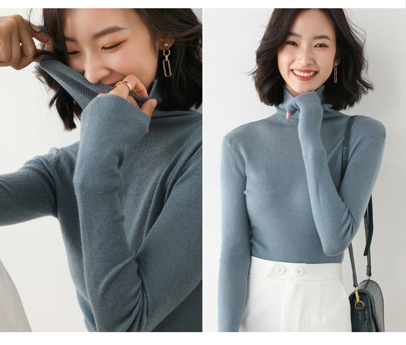 Свитер женский зимний, вязаный, однотонный, с высоким воротом, 2020
