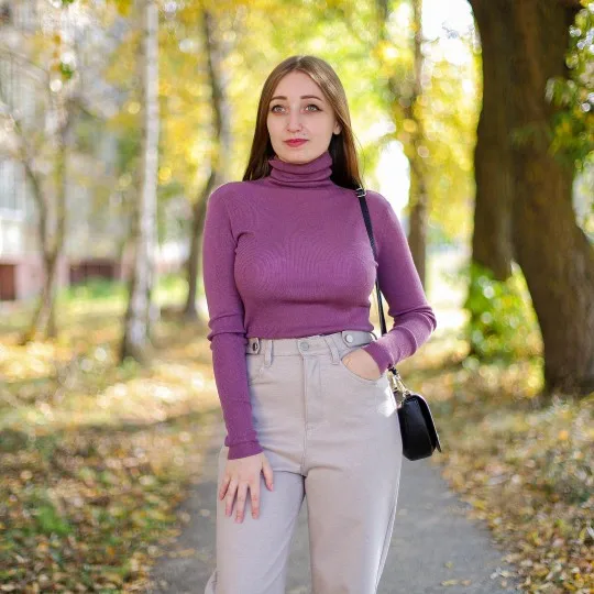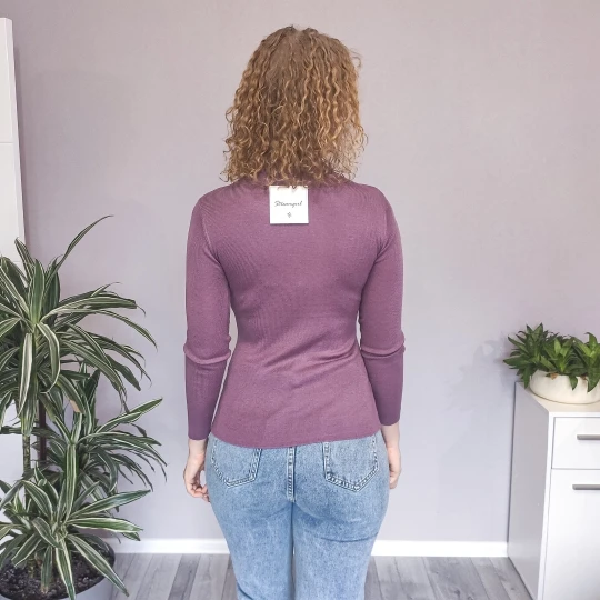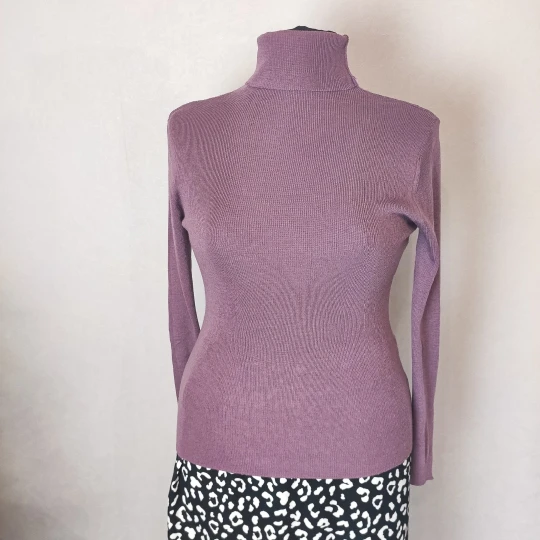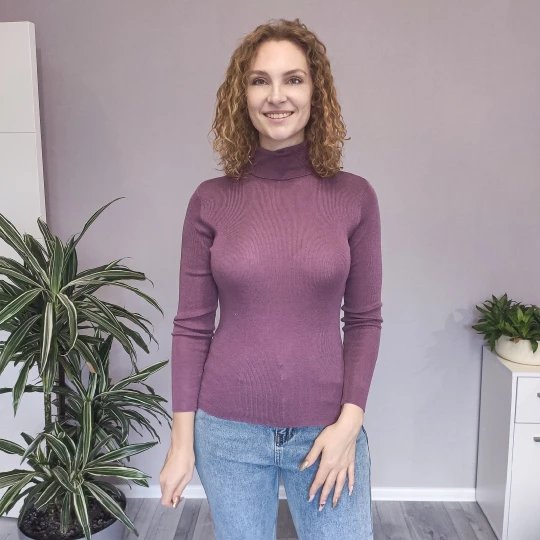 Брала размер L на свои параметры 86 65 92 рост 158 см, подошла отлично, так как я хотела, по фигуре. Тянется хорошо, но лучше брать с запасом, обычно ношу S-M тут взяла L. Материал тонкий, легкий, немного просвечивает, учитывайте это при выборе цвета, в моем вполне прилично смотрится, так что можно и на работу, куда и брала. Немного электризуется, от волос, хотя качество отличное, комфортная к телу, не колется, не думаю что будет скатываться, выглядит очень достойно. Цвет конечно отдельная тема, у меня фиолетовый, он очень необычный и красивый, отлично подходит под разный низ. Носить можно как с брюками так и с юбками. Воротник не подворачивается, должен быть стойкой, со складками. Дефектов нет, придраться не к чему, всем советую я очень довольна приобретением! Доставили за 3 недели.