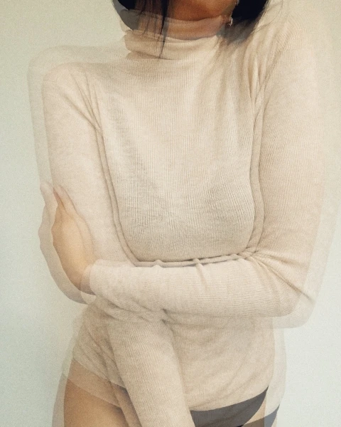 Водолазка восторг, я не ожидала такого качества. Мягкая, тонкая, но мой цвет не просвечивает. ОГ80, рост 153 , взяла размер S, умеренный обтяг. Долго шел заказ месяц до Москвы, отправил продавец быстро