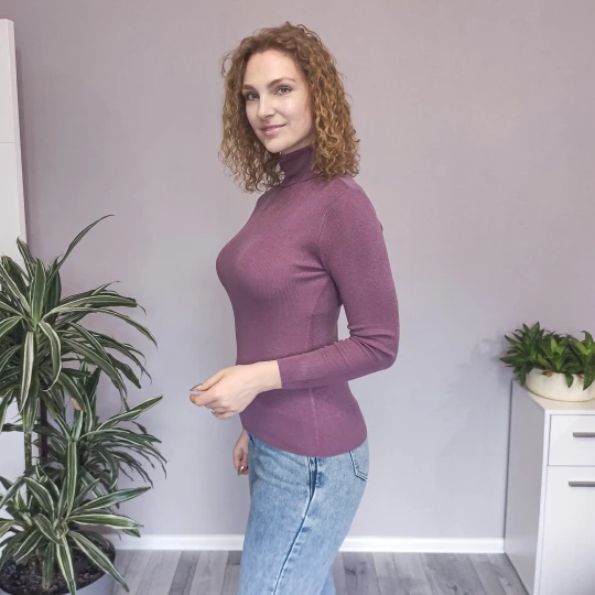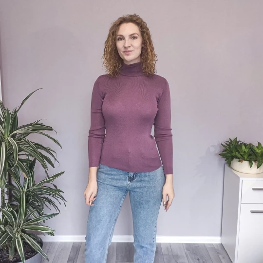 На параметры 82/61/86 и рост 165см. самый маленький размер S сел по фигуре. Водолазка эластичная и налезет на даму с пышными формами. Длина рукава полная и на мой рост можно и подкасать. Изделие трикотажное, вязка не очень плотная, ткань немного просвечивает. Качество пошива отличное.