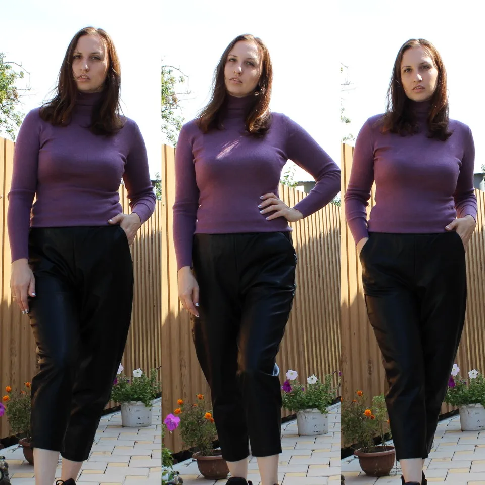 На свои 90/70/95 рост 170 взяла 2XL села как надо и из этого делаю вывод что водолазка маломерит и при выборе размера стоит это учитывать. Трикотаж тонкий но в моей расцветке всё прилично, на теле не просвечивает. О цвете хочу сказать что он интересный и весьма необычный и это мне очень импонирует. К телу приятный,мягкий, хорошо тянется. Качество без нареканий. Швы ровные, торчащих ниток не увидела.