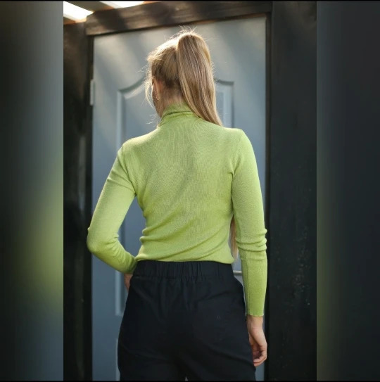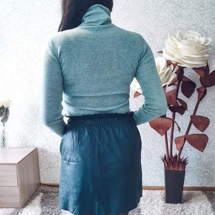 Сразу буду хвалить, вещь безумно приятная, нежнейшая к телу в мятно-зелёном цвете Теперь одна из самых моих любимых, проста в сочетании) с юбками, джинсами, и другими) сейчас как никогда актуальна )) Водолазка садится по фигуре, имеет высокий воротник Выполнение качественное, аккуратное, на просвет тонкая, но не просвечивает. Не колется, особо не мнётся. На свои параметры: рост 165 см, 87-68-90 я взяла размер L, села по фигуре, материал отлично тянется и подойдёт на параметры чуть больше моих. Срок доставки в Россию составил 20 дней, было упакована в почтовый пакет и зип/пакет; в подарок продавец положил резинку для волос. Покупкой очень довольна.