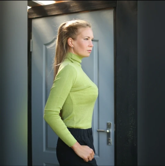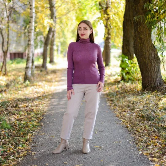 Водолазка очень понравилась , вещь качественная, комфортная и универсальная. Своих денег стоит. На параметры 85-74-98 и рост 172 см был выбран размер L. Выбирала исходя из размерной таблицы. В итоге этот размер на моей фигуре сел красиво и безумно комфортно. Никаких неприятных ощущений во время носки не возникает. Материал мягкий, очень нежный, тонкий, но при этом в осеннюю погоду в нем тепло, не колется, очень хорошо тянется, на теле не светиться и красиво ложится по фигуре. Горловина высокая , линия плеча стандартная, рукав полной длины. Вязка аккуратная, ровная , такой же и пошив . Лишних ниток почти не было и неприятного запаха при получении тоже не было.