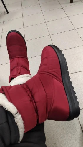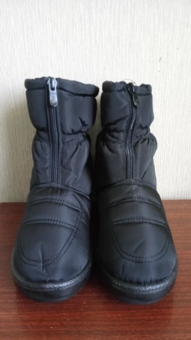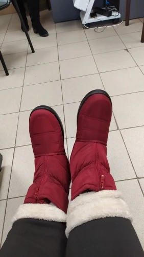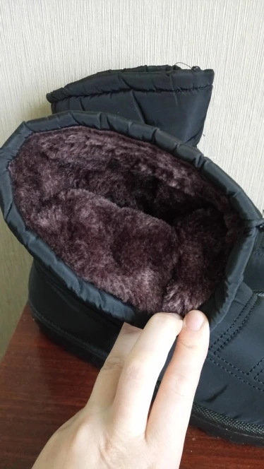 Заказ пришёл крейсерски, запаха никакого, ОЧЕНЬ лёгкие, я даже подумала, что там не сапоги. Высота подошвы 3,2 см, внутри искуственная меховушечка. Брали маме, у неё ОЧЕНЬ проблемные стопы - ИДЕАЛЬНО! Она довольна не сказать как. Ножка вошла, как в вязаный носочек, ни одна косточка не давит, не упирается, не трёт. Смотрятся очень аккуратно. Качество хорошее, ни ниток, ни клея. Цвет ровно как на фото. Сегодня ходила в них, очень удобно, не скользят, при штормовом ветре сапоги тепло удержали и не продувались. Думаю, до минус 10 край. Однозначно брать.