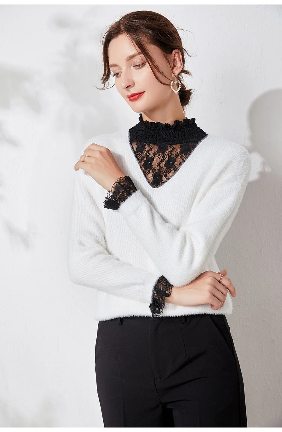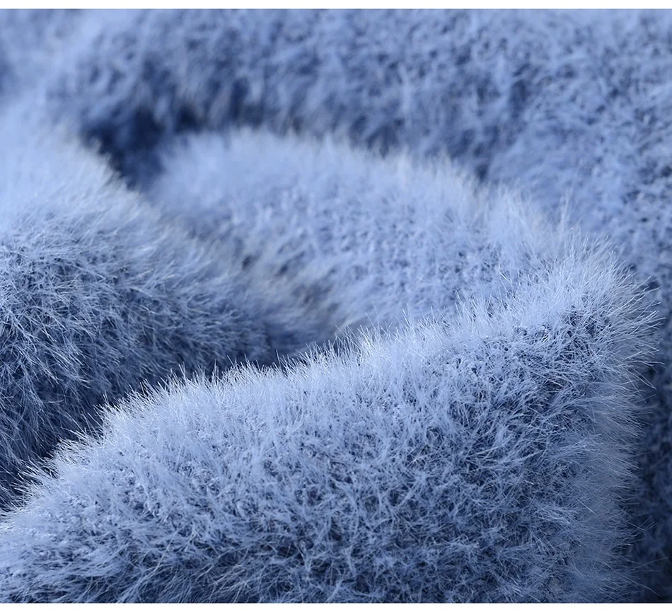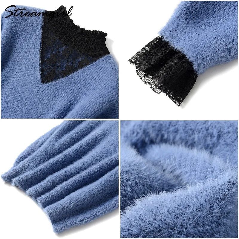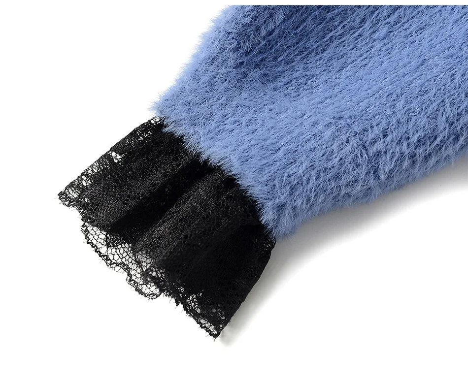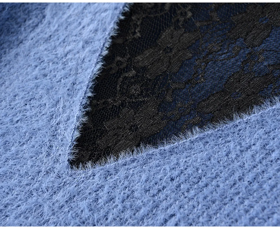 Теплый кружевной свитер, женский зимний белый пушистый свитер, пуловер, джемпер, толстые свитера из искусственной норки и шерсти для женщин, синие свитера