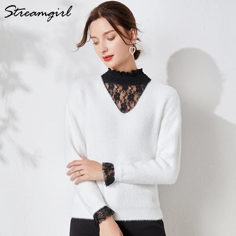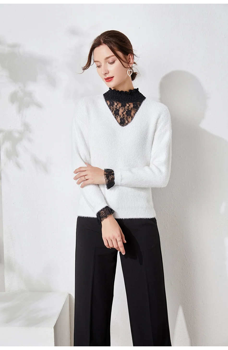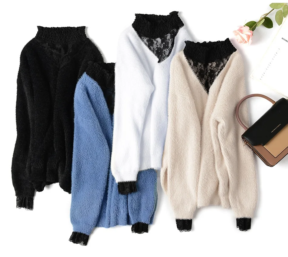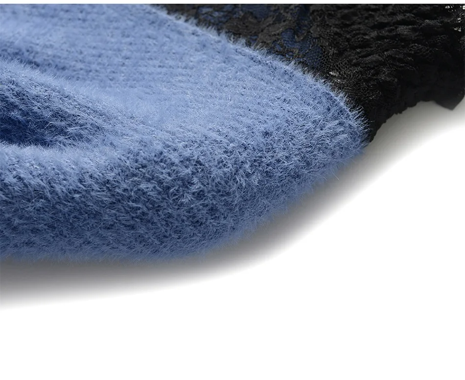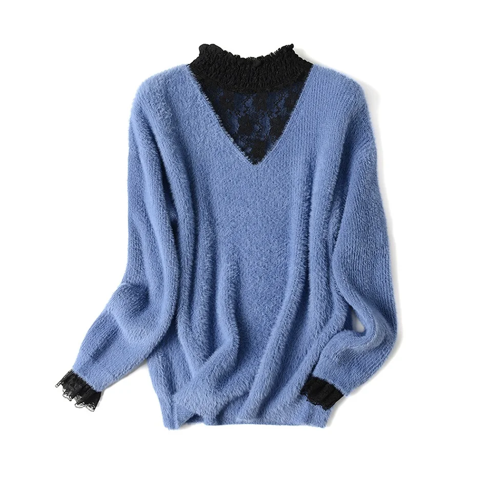 Теплый кружевной свитер, женский зимний белый пушистый свитер, пуловер, джемпер, толстые свитера из искусственной норки и шерсти для женщин, синие свитера