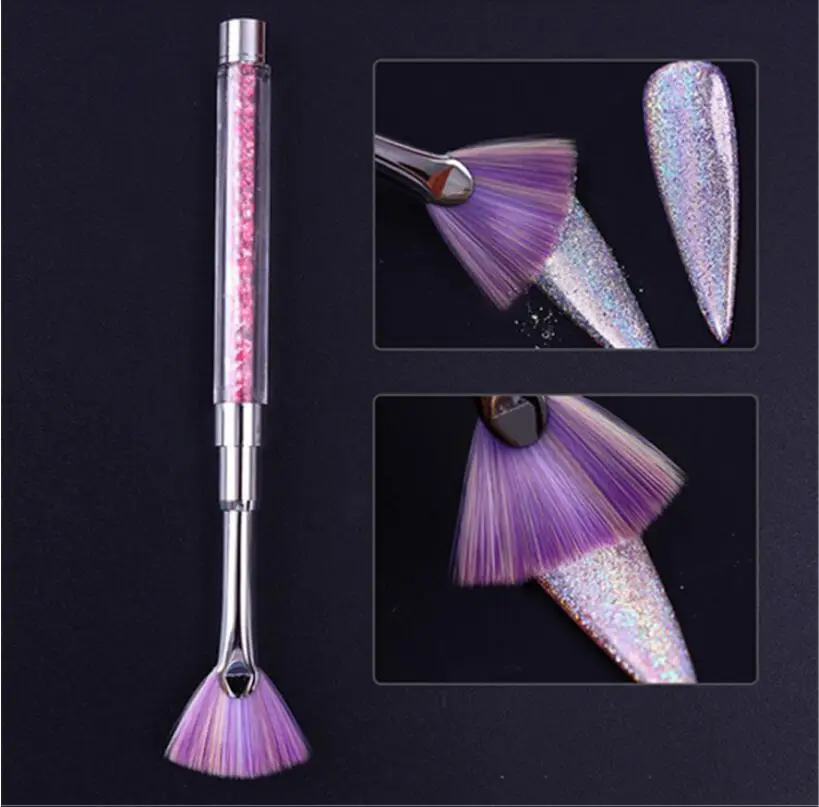 1 шт ногтей кисть градиент вентилятор Форма розовые стразы ручка пыли блеск средство для снятия пудры ручка для рисования Гель для ногтей кисть T0543