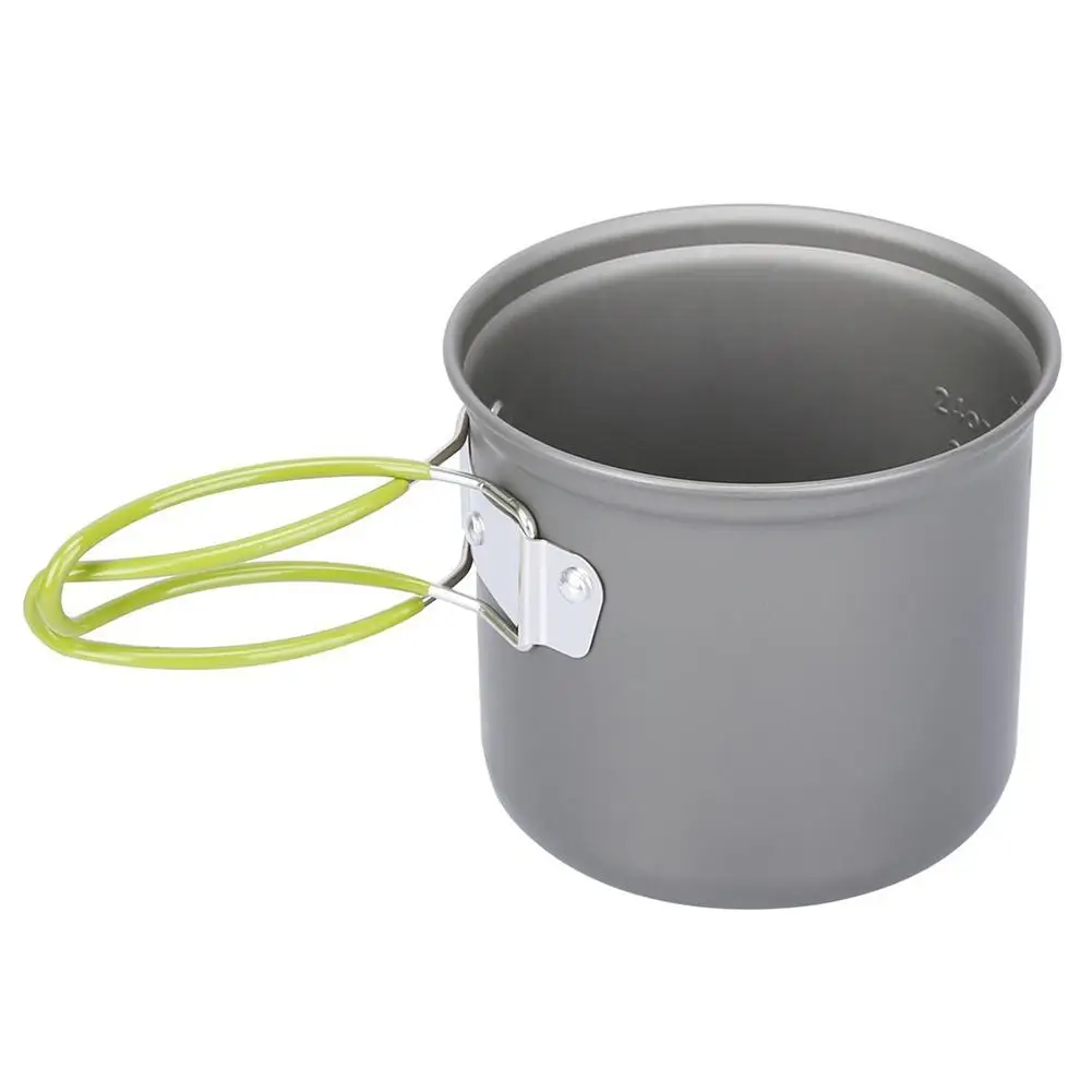 DS-101 набор кухонной посуды для кемпинга, походная посуда, кухонная посуда для путешествий, столовые приборы, кастрюля, сковорода, инструменты для пикника, зеленая ручка