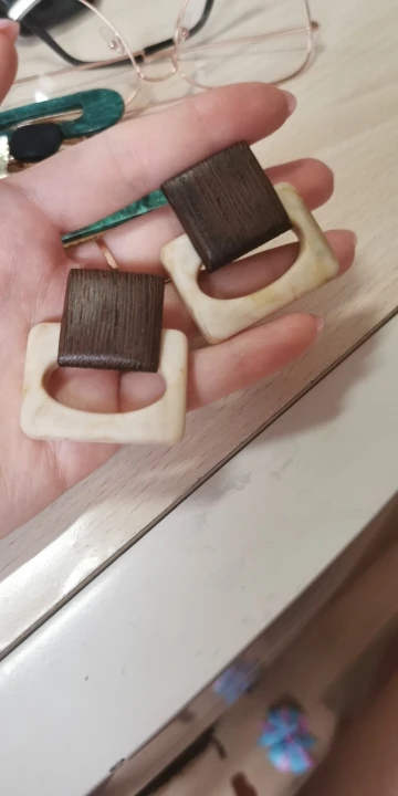 сережки прелестные, крупные, на ушах смотрятся дорого. Из минусов-виден термоклей, которым скреплены детали сережки. попробую избавиться самостоятельно. на ощупь очень приятные, не тяжёлые. рекомендую!