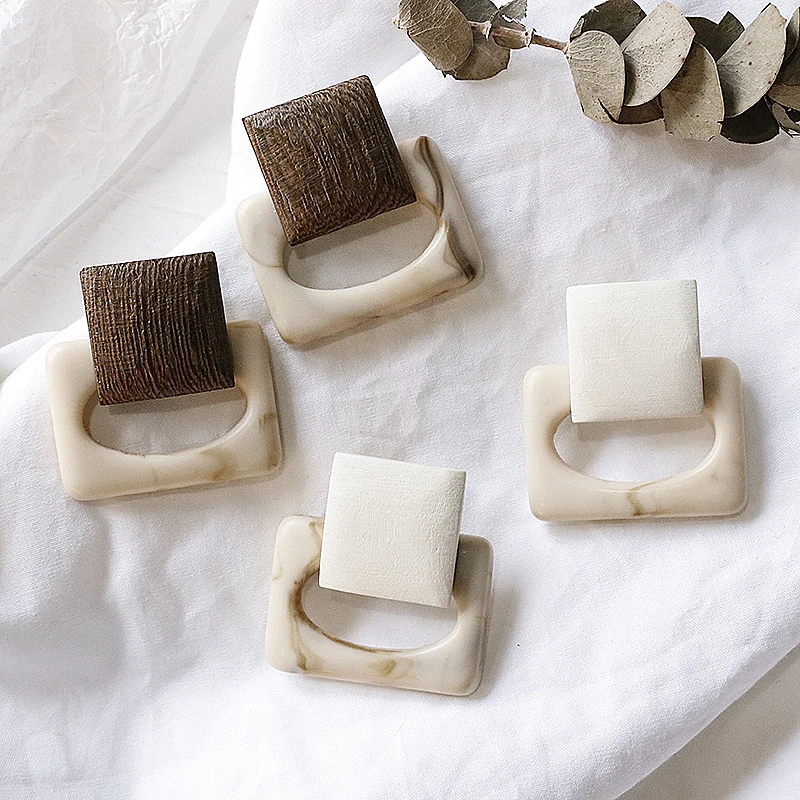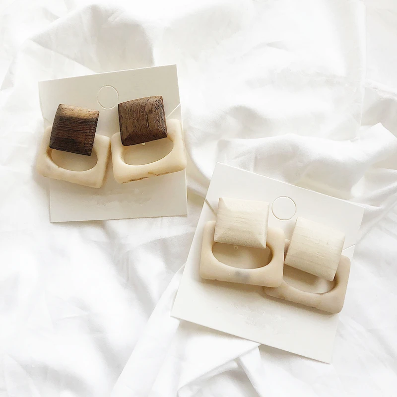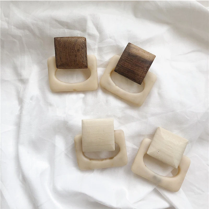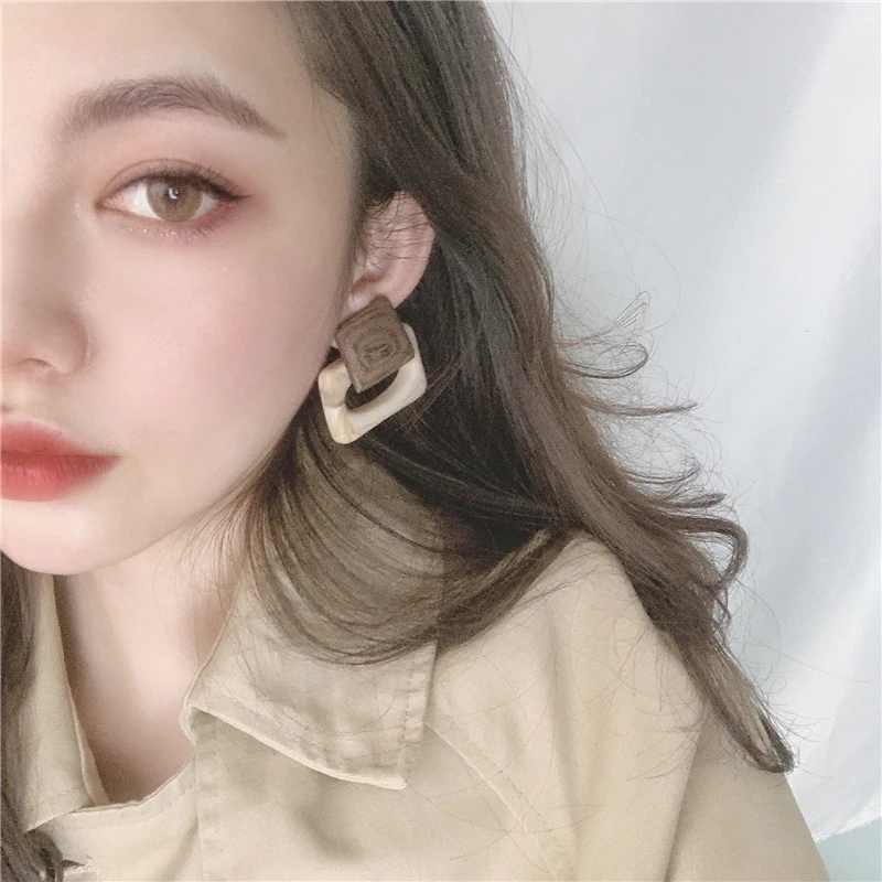 AENSOA винтажные большие полимерные деревянные квадратные висячие серьги 2021 Новые корейский уксусный кислотные большие серьги модные геометрические украшения для вечеринок