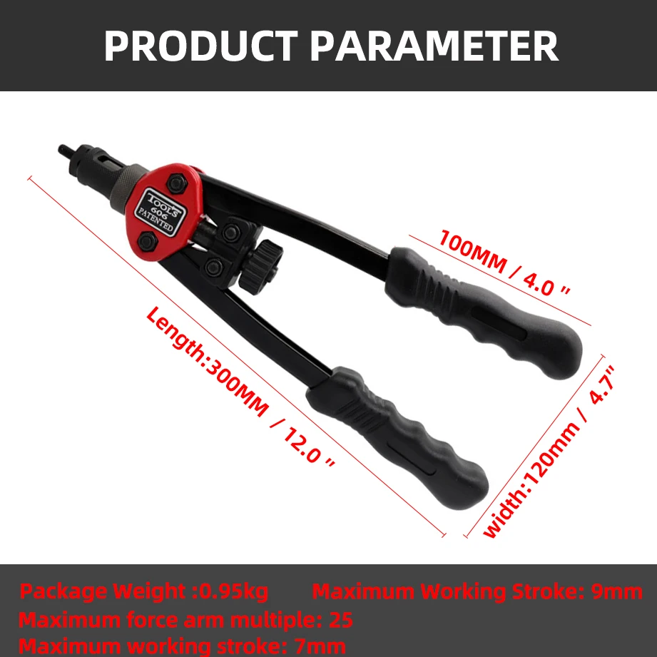 HIFESON 12 ''ручные заклепки с резьбой гайка пистолет с 50 шт. гайки 606 вставить Руководство Клепальщик клепки Rivnut инструмент для M3 M4 M5 M6 M8Технические параметры: