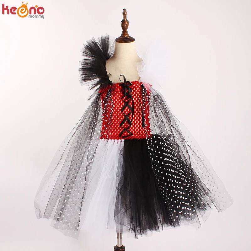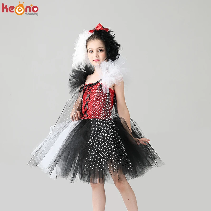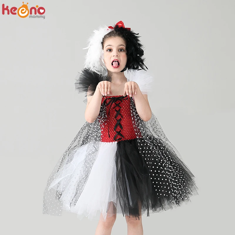 Cruella De Vilплатье-пачка для девочек с повязкой на голову, Детский костюм для Хэллоуина из далматинцев, детское праздничное платье в горошек