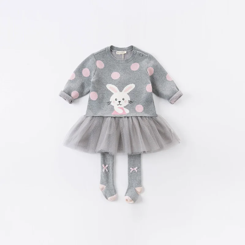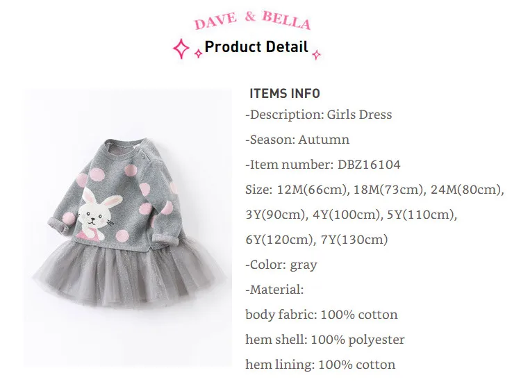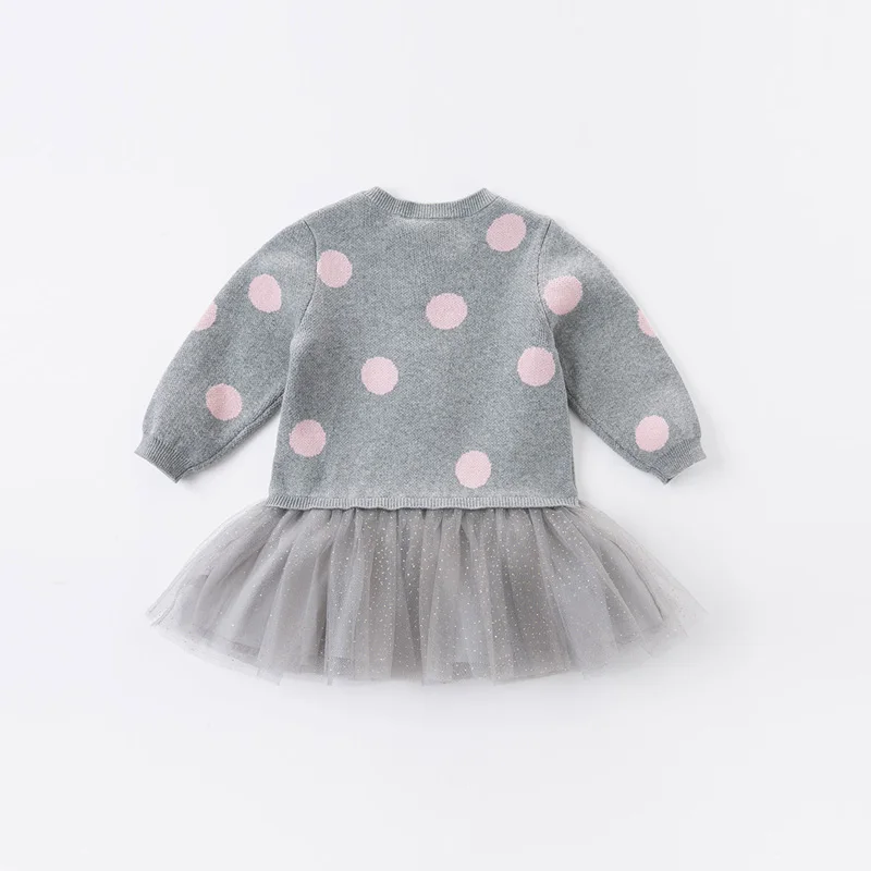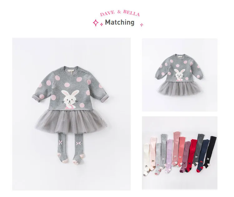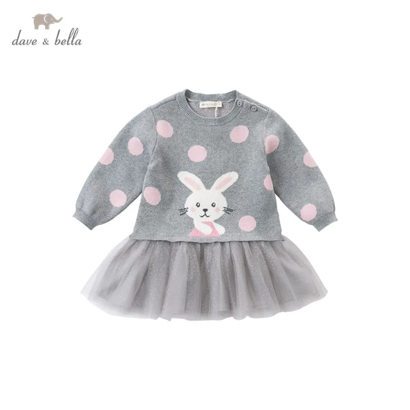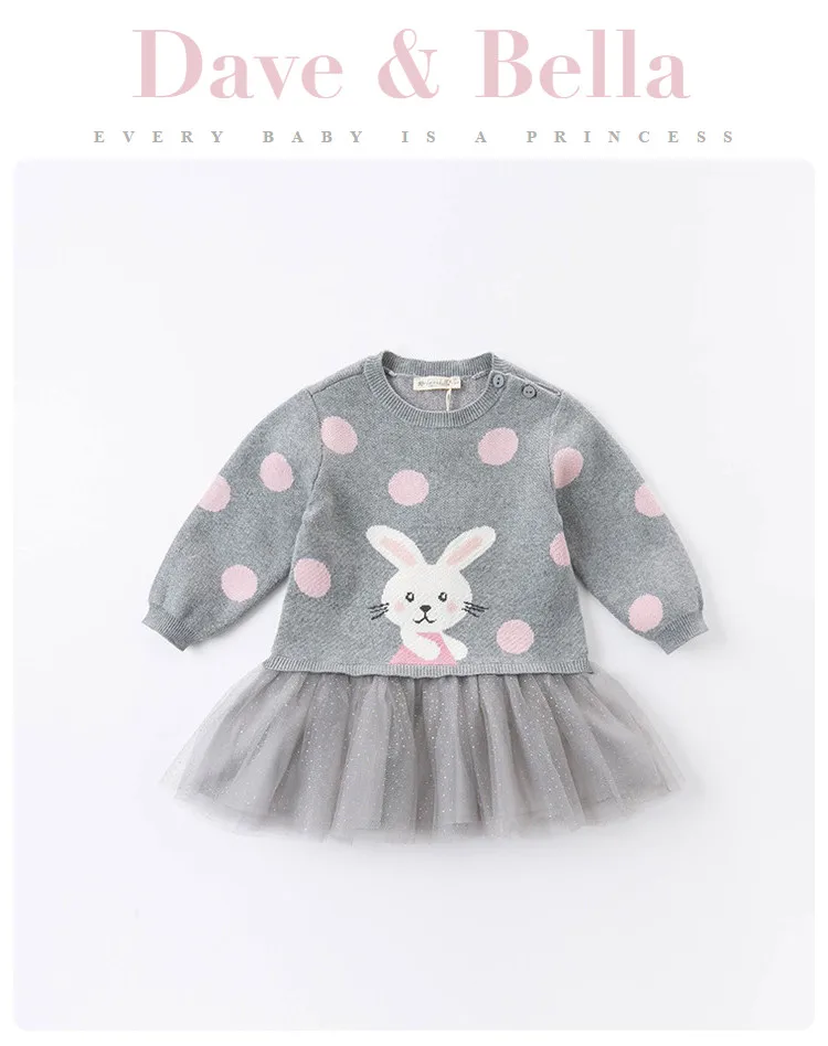 DBZ16104 dave bellaосеннее платье-свитер с милым рисунком в горошек для маленьких девочек Детские Модные Вечерние Платья Детская одежда в стиле лолита
