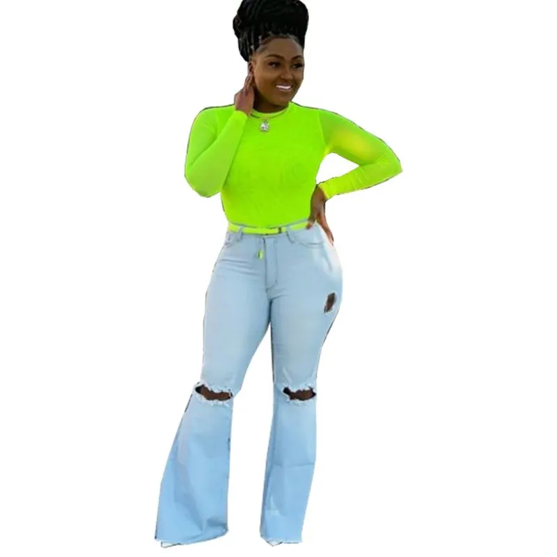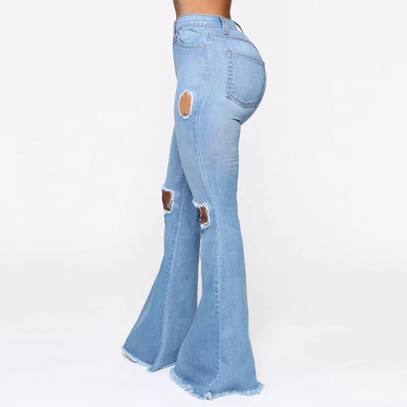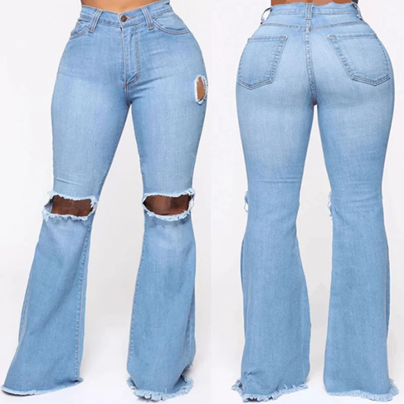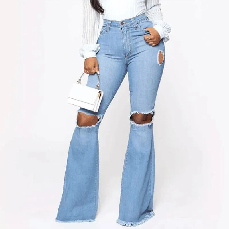 Женские рваные джинсы, соблазнительные расклешенные брюки с бахромой, женские брюки, синие джинсы со средней талией, Модные Элегантные повседневные удобные брюки, новинка 2020