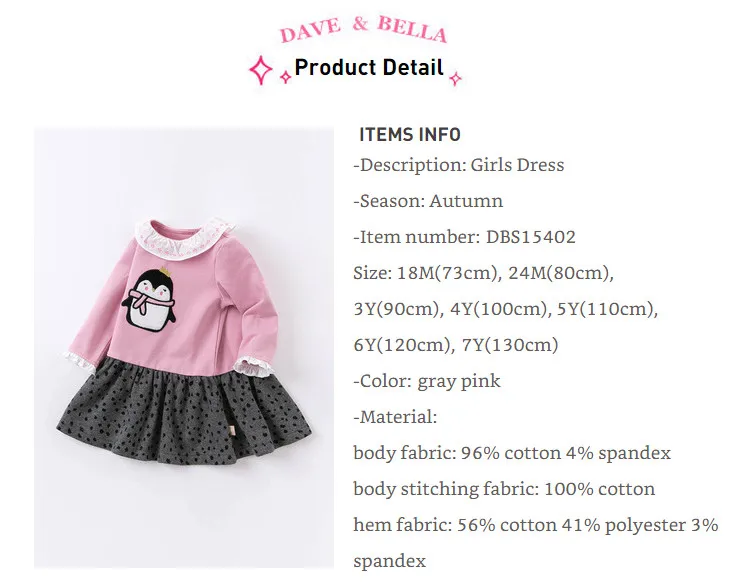 Dave bella платье для девочек DBS15402, Осеннее милое лоскутное платье с мультяшным рисунком, Детские Модные Вечерние Платья, детская одежда в стиле Лолита