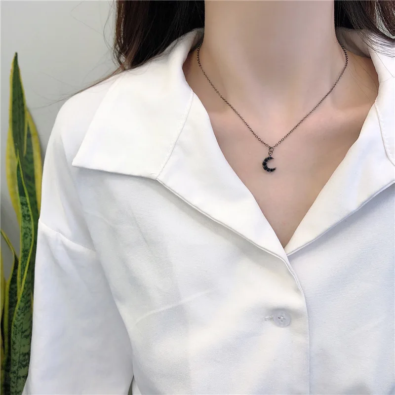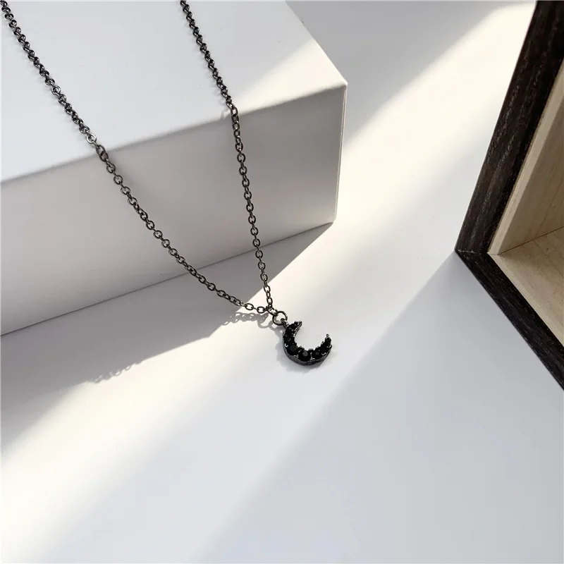 Готическое простое ожерелье с подвеской в виде черной Луны, корейский Темный подвеска в виде полумесяца для женщин, мужчин, девушек, ошейник, ювелирные изделия, подарок, 2021 тренд