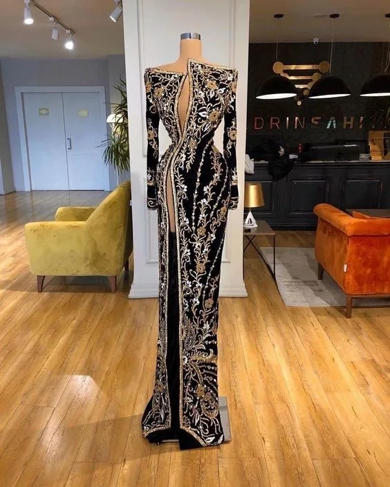 Африканские Выпускные платья с длинными рукавами и аппликациями, ко...