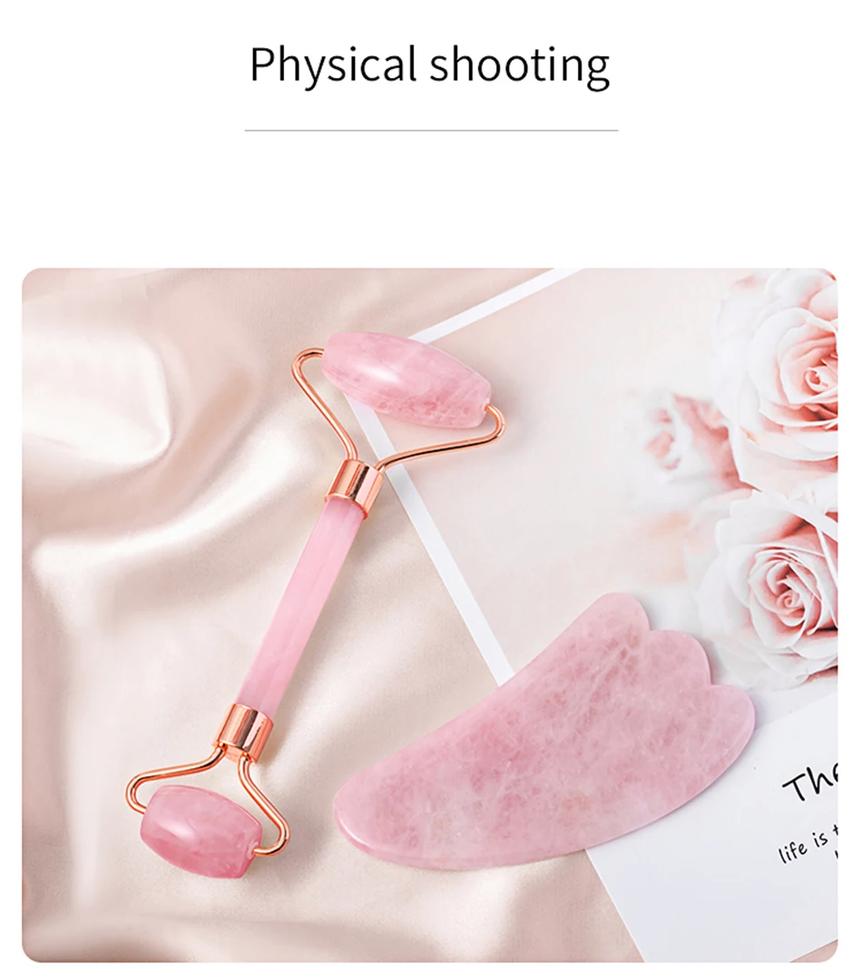 Натуральный розовый КВАРЦЕВЫЙ ролик каменный Массажер для ухода за кожей лица нефритовый валик гуаша Комплект Уход за кожей лица массажер тонкий Красота массажер для лица, уход за кожей лица, массаж