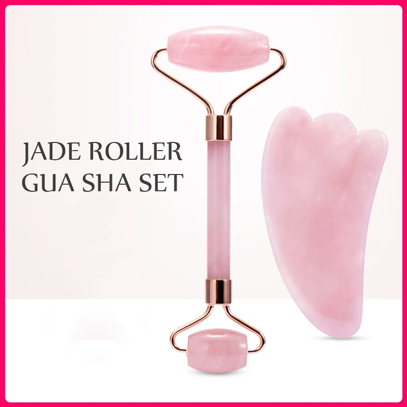 Массажер для лица ZOREYA из розового кварца, роллер для лица и гуаш...