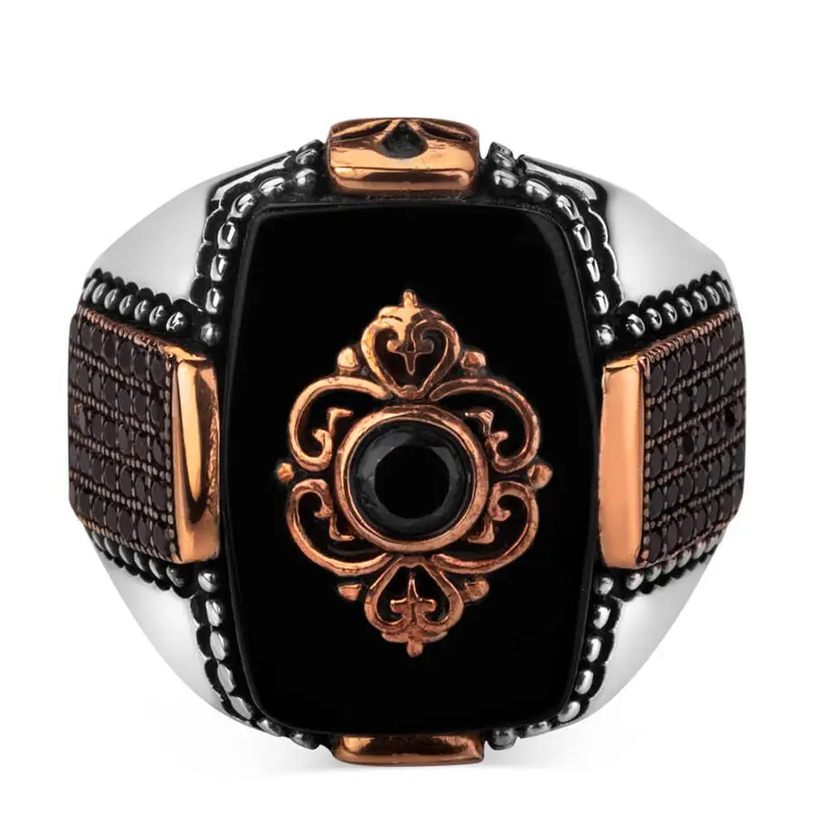925 пробы Серебряный Мини-Камень Гравировка черный оникс мужское кольцо прямоугольное эксклюзивное кольцо для мужчин с ониксом драгоценный камень
