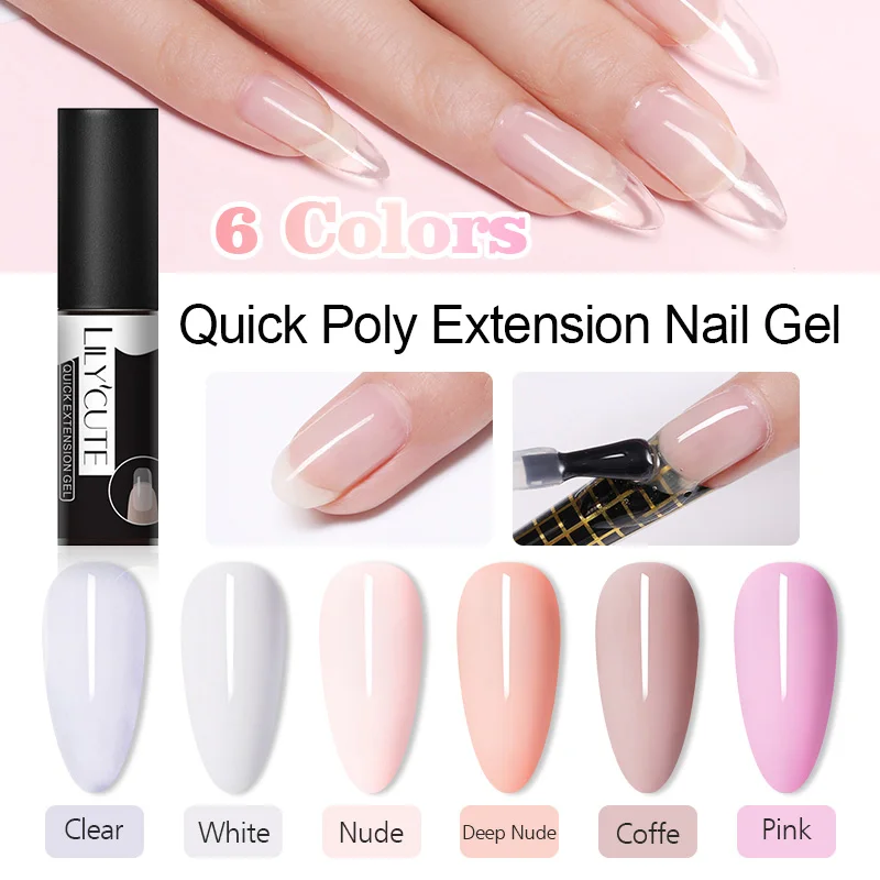 Гель для наращивания ногтей LILYCUTE, прозрачный, розовый, белый, 6 цветов, для наращивания ногтей, стикеры, лак для ногтей