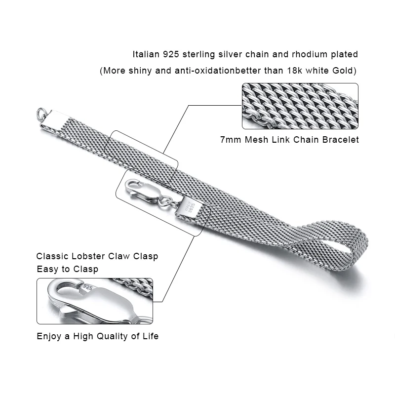 Key Word100% 925 Sterling Silver 7mm Mesh Link Chain Bracelet