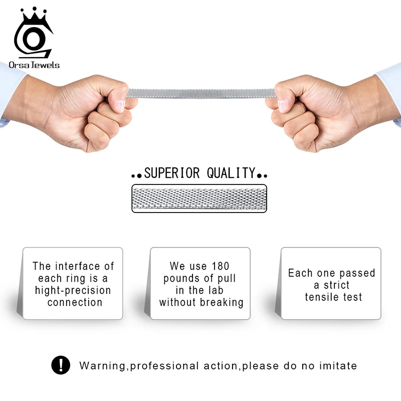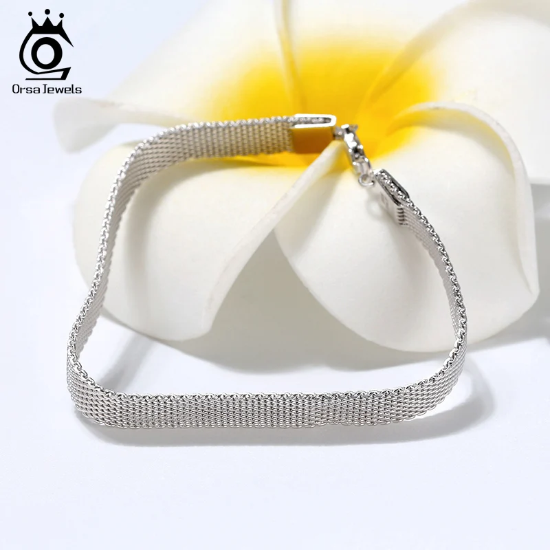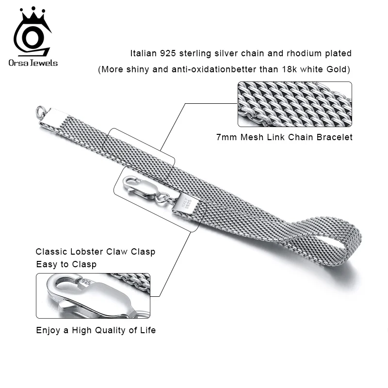 ORSA JEWELS изысканный 7 мм сетчатый Браслет-цепочка браслет 925 пробы серебра пробы браслет застежка-карабин ювелирные изделия подарок SB68