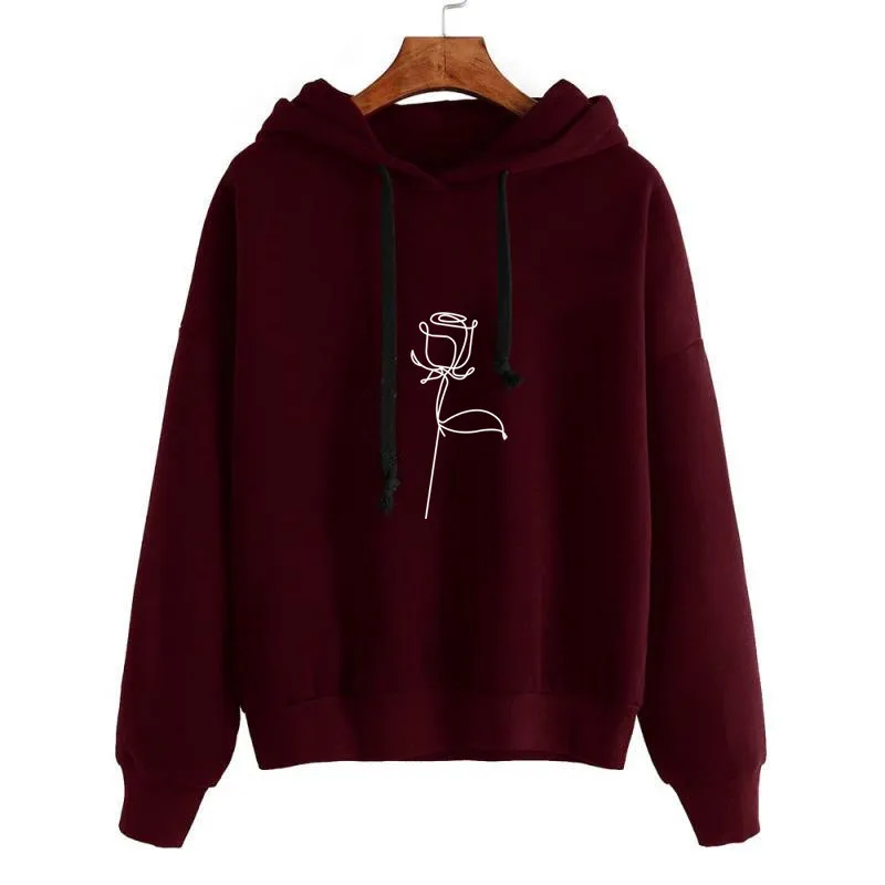 Женская толстовка с капюшоном, однотонная свободная толстовка с цветочным принтом и длинным рукавом, осень толстовки, пуловеры, повседневный стиль