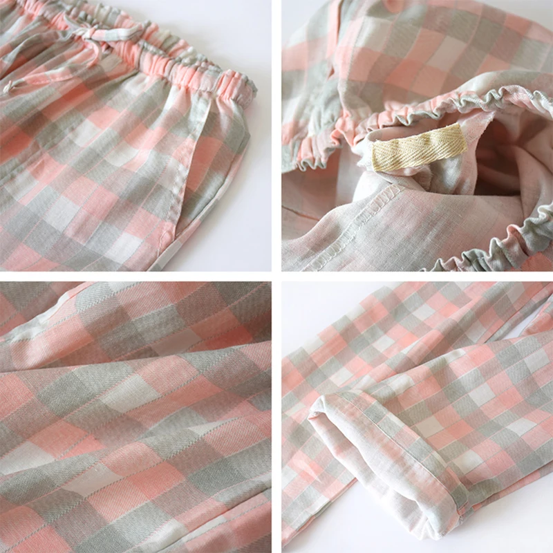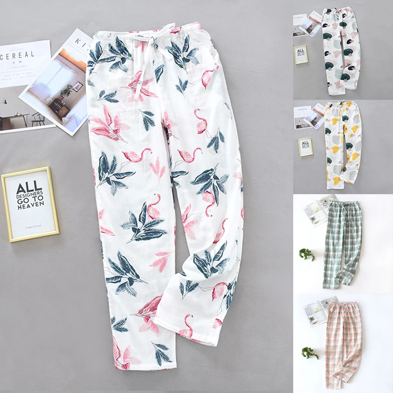 Брюки женские в горошек, Хлопковая пижама, двухслойные пижамные штаны, тонкие свободные штаны, размера плюс для сна на лето