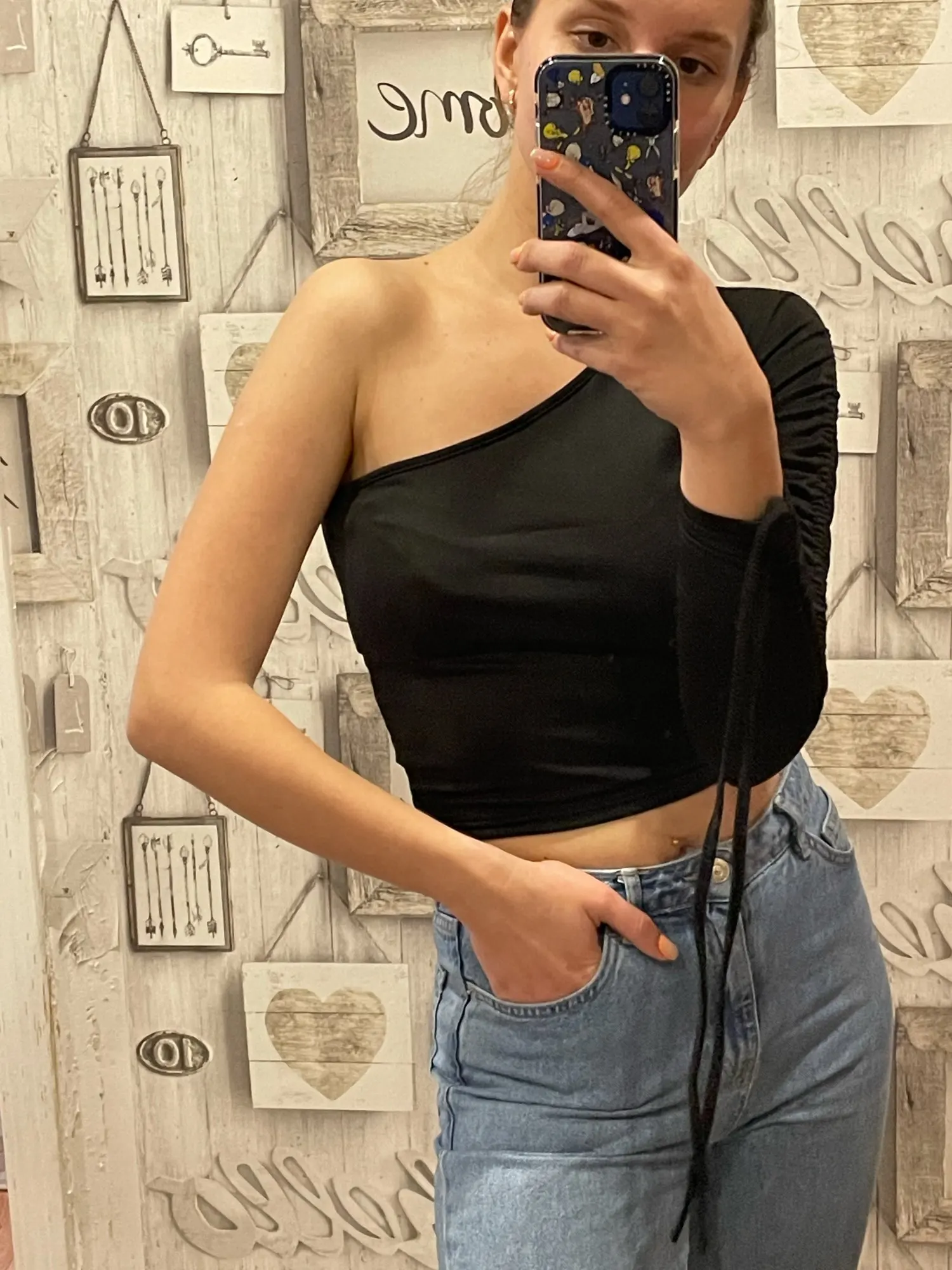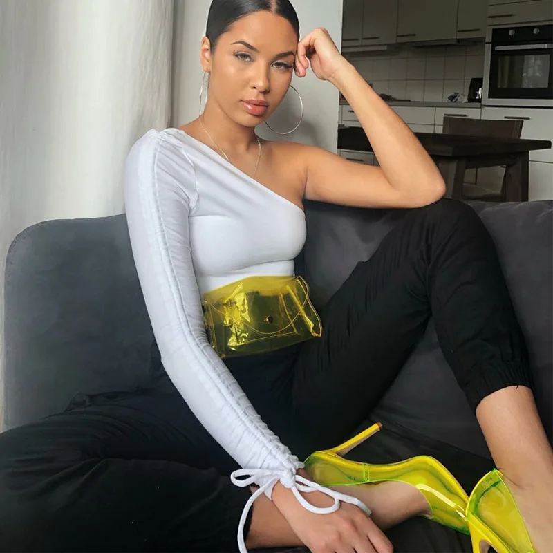 Футболка женская плиссированная, на одно плечо, с длинным рукавом