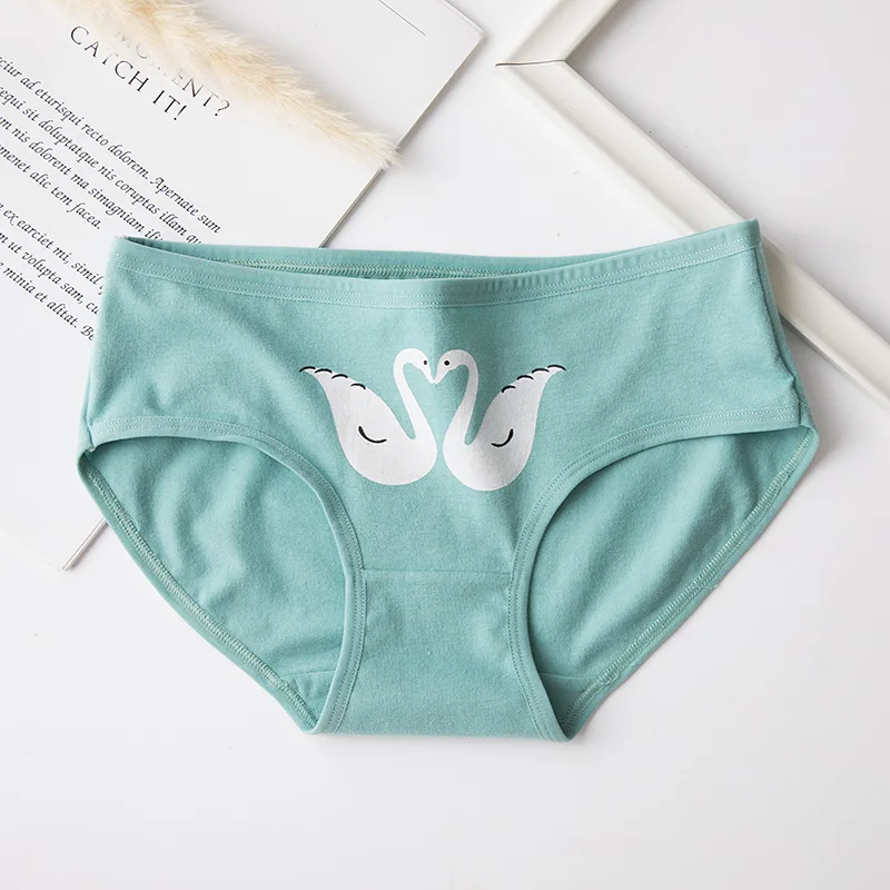 Женское нижнее белье, хлопковые трусики для женщин, милое женское нижнее белье в виде лебедя с буквенным принтом, нижнее белье с низкой посадкой, женские зеленые трусики
